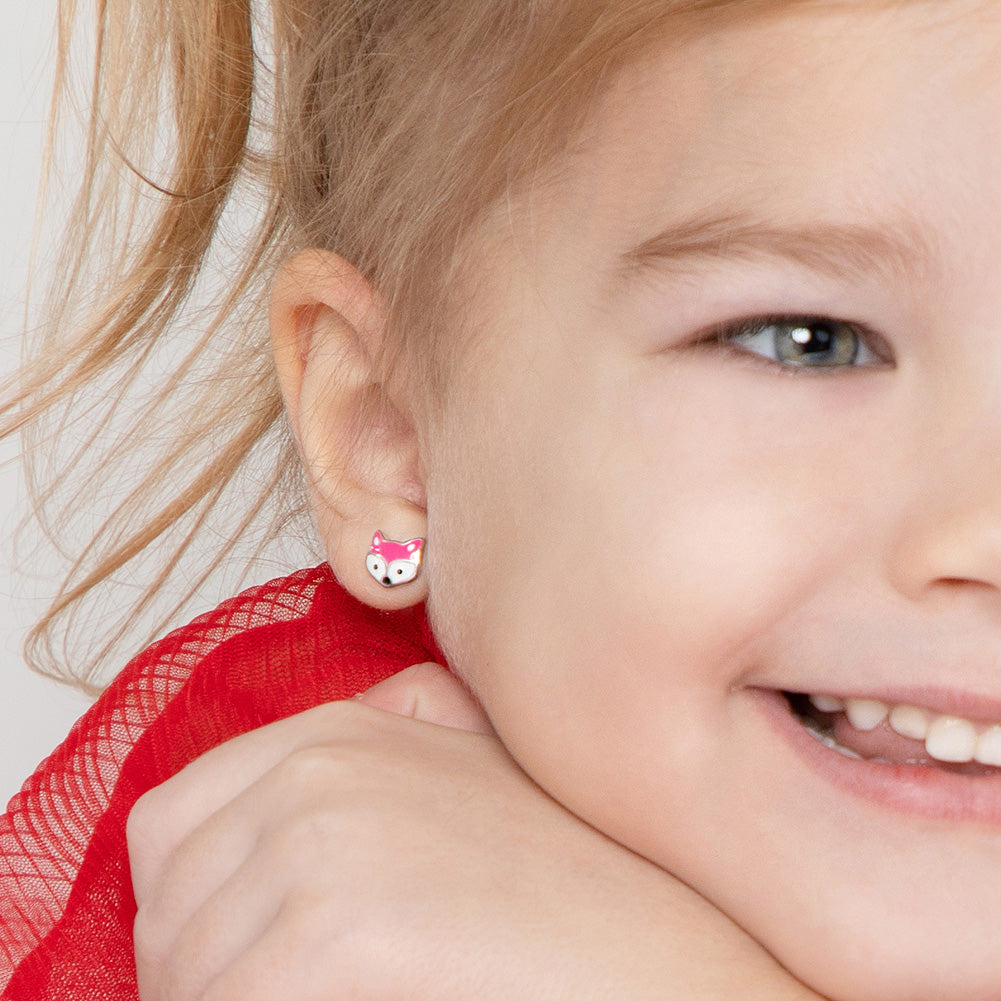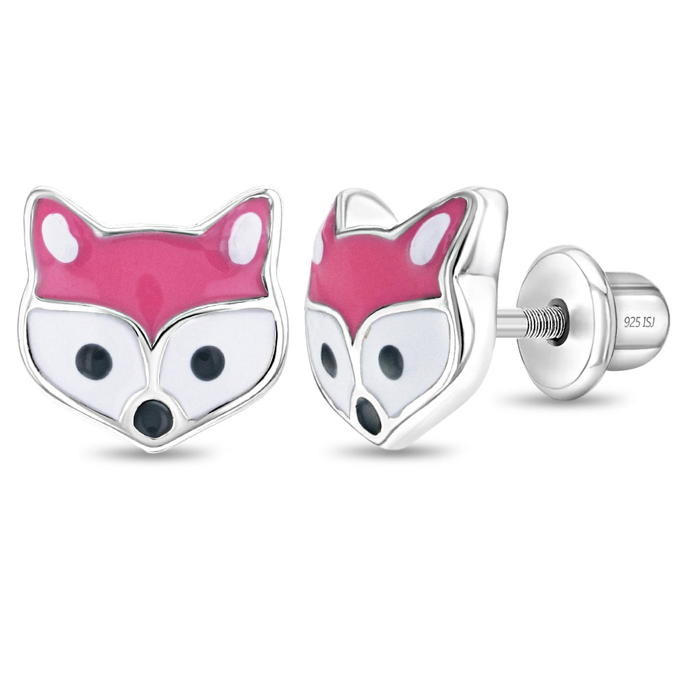 This beautiful pair of fox earrings are a timeless and elegant addition to any of your young girl's fun and fashionable jewelry collection. Crafted in 925 sterling silver which are suitable for those with sensitive ears, they are secured with safety and secured screw backs for children. These fox earrings feature bright and colorful enamel colors for a more fashionable look. Buy a pair for someone special in your life and this pair of earrings will be cherished for a long time. A complimentary gift box is included.