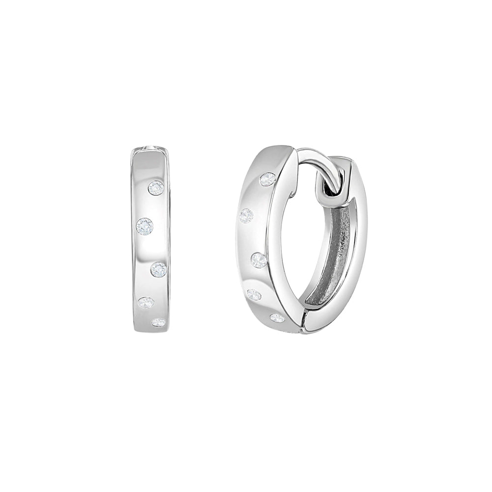 Add a pretty pop of color to your little girl's look with this pair of small sterling silver huggie hoop earrings with cubic zirconias. These CZ small huggie hoops are the perfect choice for children's jewelry gifts or everyday silver earrings. They are designed to open easily on a hinge and snap firmly back into place, enabling them to fit very securely. A cute gift that will last her a lifetime, packed neatly in a complimentary gift box.