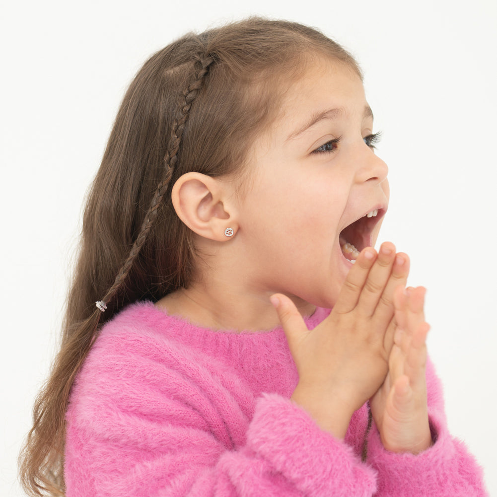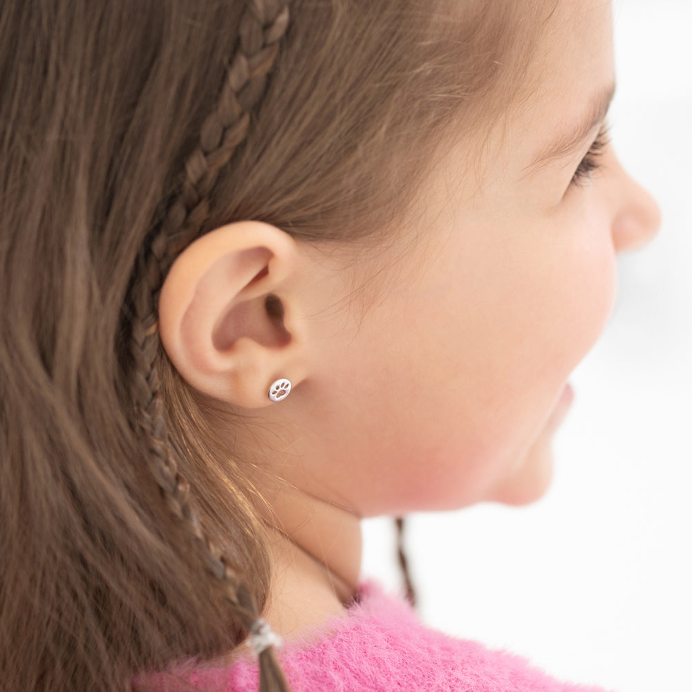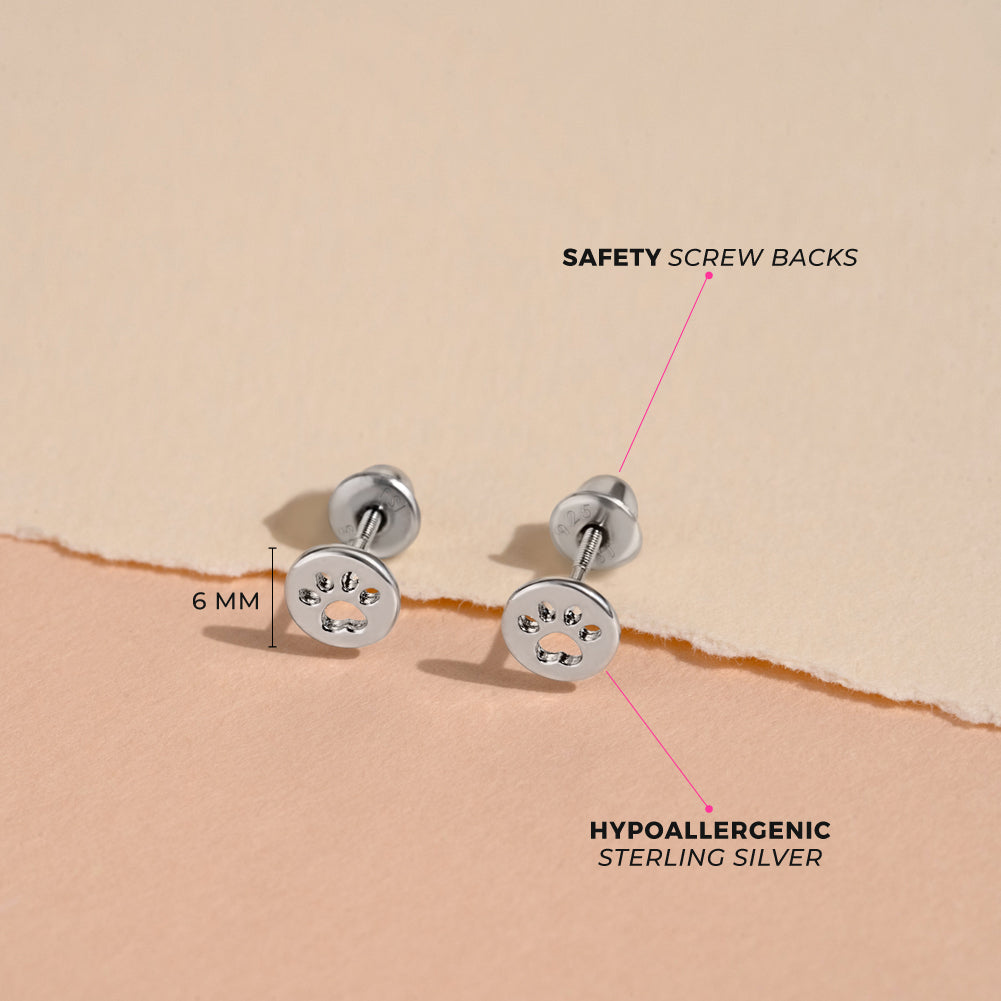 These fun best friends paw shaped earrings for little girls are a lovely reminder of their four legged friend at home. Crafted from hypoallergenic 925 sterling silver, these adorable coin-shaped earrings feature a delicate cut-out paw at the center, for young animal lovers. The safety screw back closures ensure a secure and comfortable fit, ideal for active children with sensitive ears. Combining style with durability, these charming paw earrings allow kids to showcase their love for pets with confidence and ease. These tiny paws stud earrings arrive in a lovely gift box for an easier gifting experience.