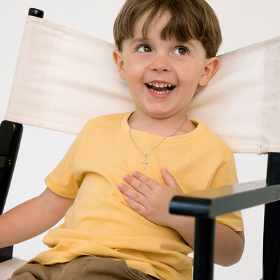 The appropriate length and size for a child's necklace can vary depending on their age and personal preference. To help you find the right fit, we recommend referring to our sizing guide for children's necklaces. Our sizing guide provides detailed information on necklace lengths and corresponding age ranges to assist you in selecting the appropriate size for your child.