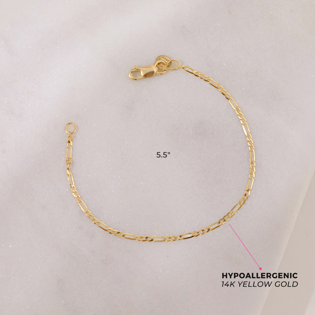 14k Figaro Chain Link Kids Bracelet
