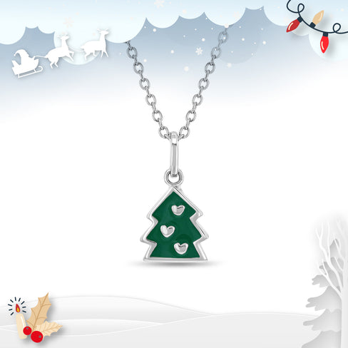Ignite the holiday spirit in your little one with a dazzling Christmas jewelry set. Meticulously crafted from 925 sterling silver, this enchanting set showcases a vibrant green enamel Christmas tree pendant accompanied by matching earrings. Created with the utmost care for girls with sensitive skin, this safe and hypoallergenic accessory will bring joy and sparkle to your child's festive ensemble. Let them embrace the magic of the season with this delightful and cherished treasure that captures the essence of Christmas. Set arrives packaged in a gift box.