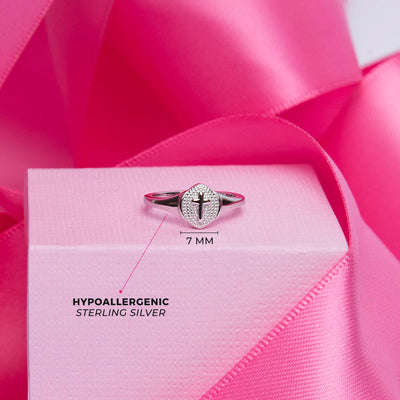 One of our most popular religious jewelry items, this cross signet ring is the perfect touch of Christianity in jewelry. The ring is crafted entirely in 925 sterling silver, making it naturally hypoallergenic and suitable for children with sensitive skin. Its beautiful design make it ideal for young girls & preteens. Available in sizes 2 through 5. Giving this ring as a thoughtful gift? Gift box is included.