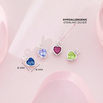 Looking for a unique birthday gift to give to the special young girl in your life? A pretty heart shaped charm that can easily be added to her favorite bracelet. Featuring a unique way of displaying her birth month that she will be able to treasure forever. This beautifully designed charm features a small simulated birthstone created from a bright cubic zirconia stone. This stunning charm glistens with every glimmer of light adding a fun and vibrant touch to her favorite charm bracelet. A gift box is included with your purchase for easy gifting.