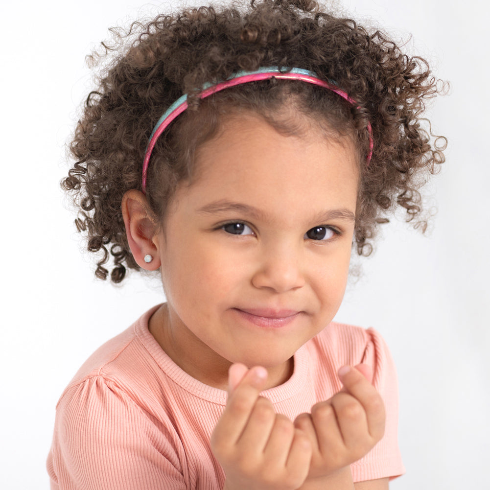 -Make sure the child's earlobe is clean and free from any dirt or debris.-Hold the screw back earring in one hand, ensuring the threaded post is visible.