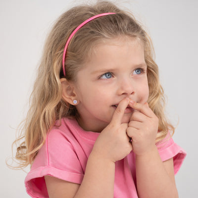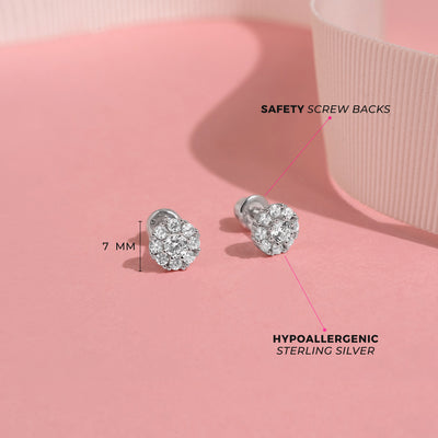 These stunning earrings for little girls will add a glamorous touch to any outfit, making it the perfect gift for your little princess. Crafted entirely in 925 sterling silver with cubic zirconia stones, they are hypoallergenic and safe for children with sensitive ears. They feature a threaded earring post and back to ensure your child's earrings stay safely and comfortably in place. A complimentary gift box is included.