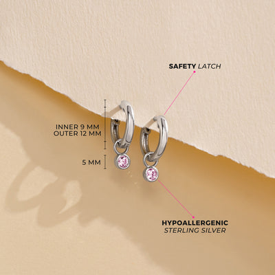 Add a delicate touch of color to your little girls everyday outfits with these petite round charm hoop earrings. Your favorite little girl will absolutely love to receive this wonderful pair of 12mm hoops, they feature a glittering cubic zirconia stone at the center of its charm. Crafted from a 925 sterling silver and designed with a latch batch closure, these earrings are safe and secure for sensitive ears. Order a pair today and we'll package this adorable pair into their own little gift box for your convenience.