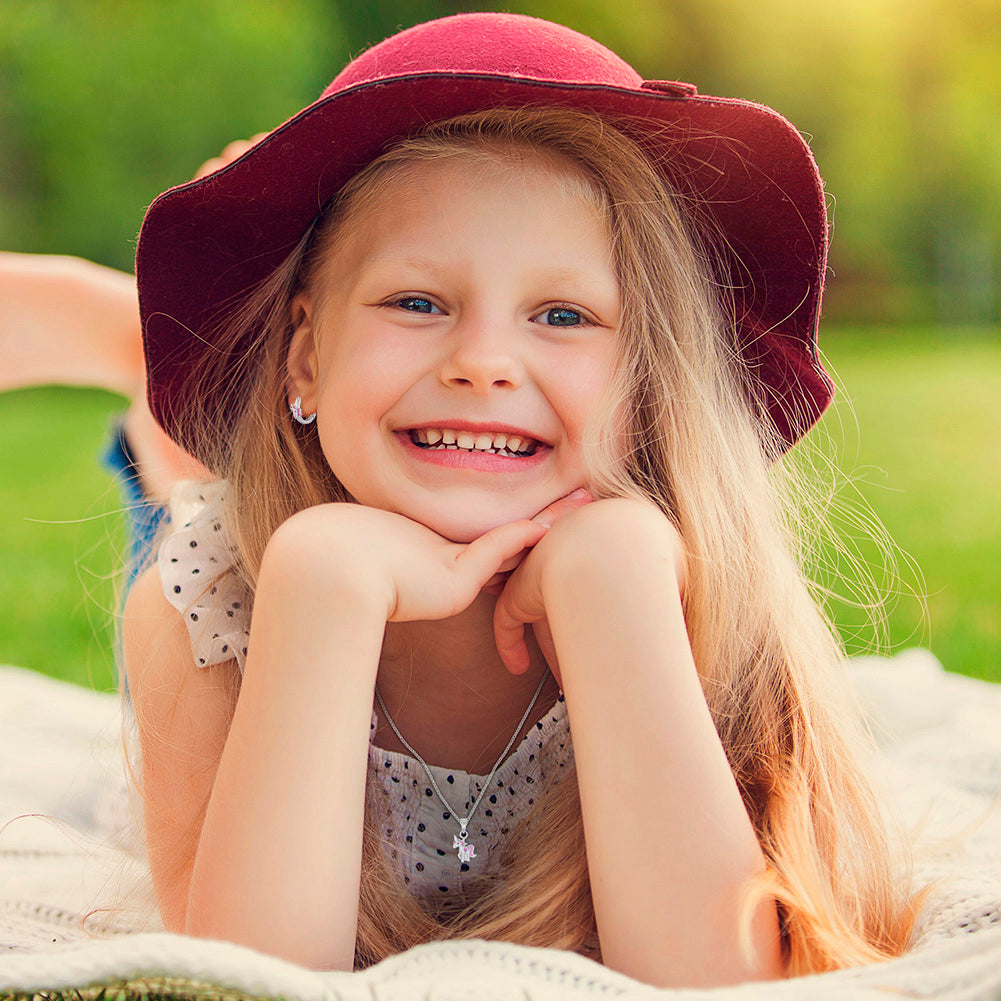 Delightful and dainty, this sparkling unicorn jewelry set composed of earrings and necklace for girls are just her fairy-tale style. Crafted in 925 sterling silver with white and pink enamel, which is hypoallergenic and suitable for children with sensitive skin. Buffed to a brilliant luster, this magical figure is perfect for your pretty little girls. A complimentary gift box is included.
