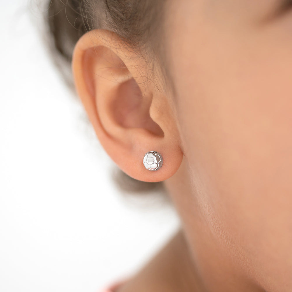 These soccer ball-shaped earrings are a goal-scoring accessory for any young sports fan. Crafted from polished sterling silver, they capture the excitement of the game with their detailed design. Made from hypoallergenic 925 sterling silver, these earrings offer both durability and comfort for sensitive ears. The safety screw back closures ensure a secure fit, great for active kids on game day. Whether on the field or cheering from the sidelines, these soccer ball earrings allow children to showcase their love for the game with style. A gift box is included with purchase.
