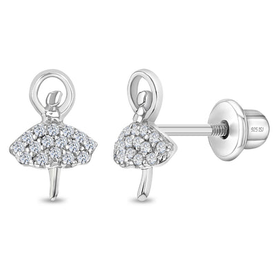 Delight your little dancer with these elegant dancing ballerina earrings! Polished to a beautiful shine, these earrings are made from 925 sterling silver, a hypoallergenic material that's gentle on sensitive ears. The graceful ballerina design captures the magic of dance, making them a fun accessory for any young ballet lover. Complete with safety screw back closures for a secure and comfortable fit, these earrings are ideal for everyday wear or special occasions. A lovely and thoughtful gift, these ballerina earrings will add a twirl of charm to any girls day!