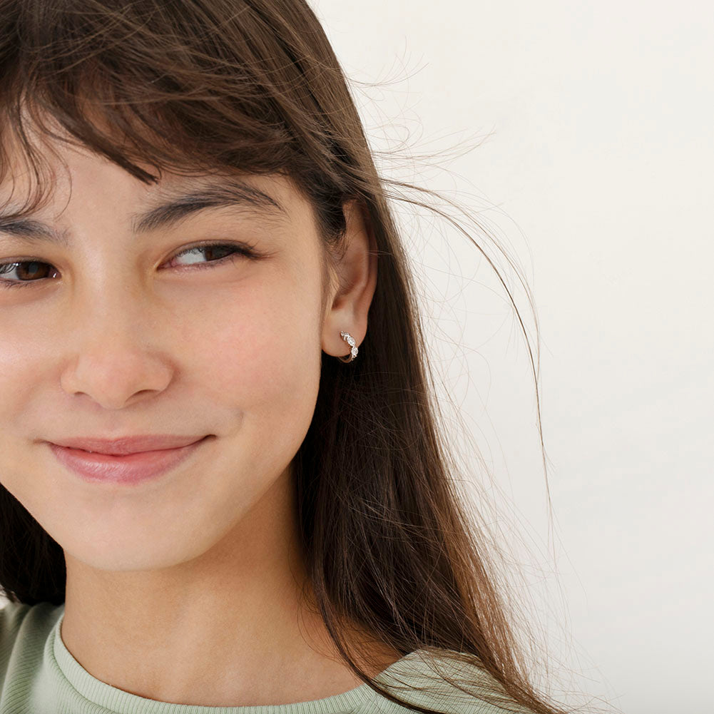 Look for smaller hoop earrings with a diameter appropriate for your child's ear size. Hoop earrings for children typically range from 7mm to 12mm in diameter. Additionally, choose hoops that are relatively thin, as thicker hoops can be heavier and potentially uncomfortable for smaller ears.