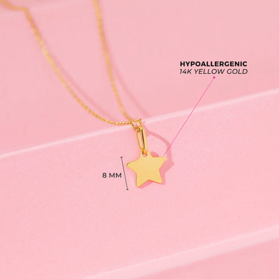 This stellar polished star pendant will easily become your preteens favorite accessory. A celestial accessory beautifully made for the stylish young girl in your life. A polished star pendant that is delicately crafted from 14k yellow gold, therefore it is safe for young girls who have sensitive skin. Matching 12" chain included. This adorable pendant necklace is packaged into a gift box for easy gifting.