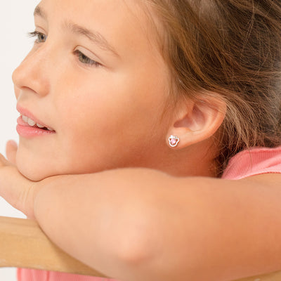 This super sweet pair of little mouse earrings are perfect for the girly girl in your life. They are crafted of 925 sterling silver, making them hypoallergenic, which is perfect for kids with sensitive ears. They feature threaded posts and a safety back system to ensure your child's earrings stay comfortably in place. Complimentary gift box is included for easy gift giving!