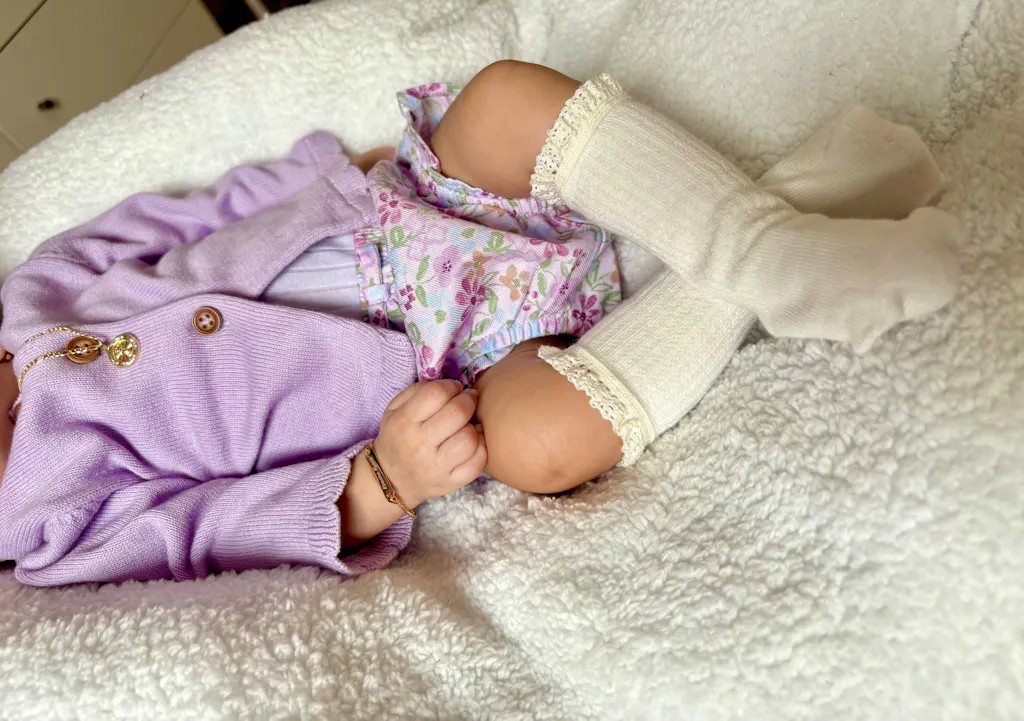 Ame la pulsera para mi bebé, ella fue prematura y es súper chiquita y le quedó un poco grande pero se la pude poner, porque no la lastima ahora mismo tiene dos meses.