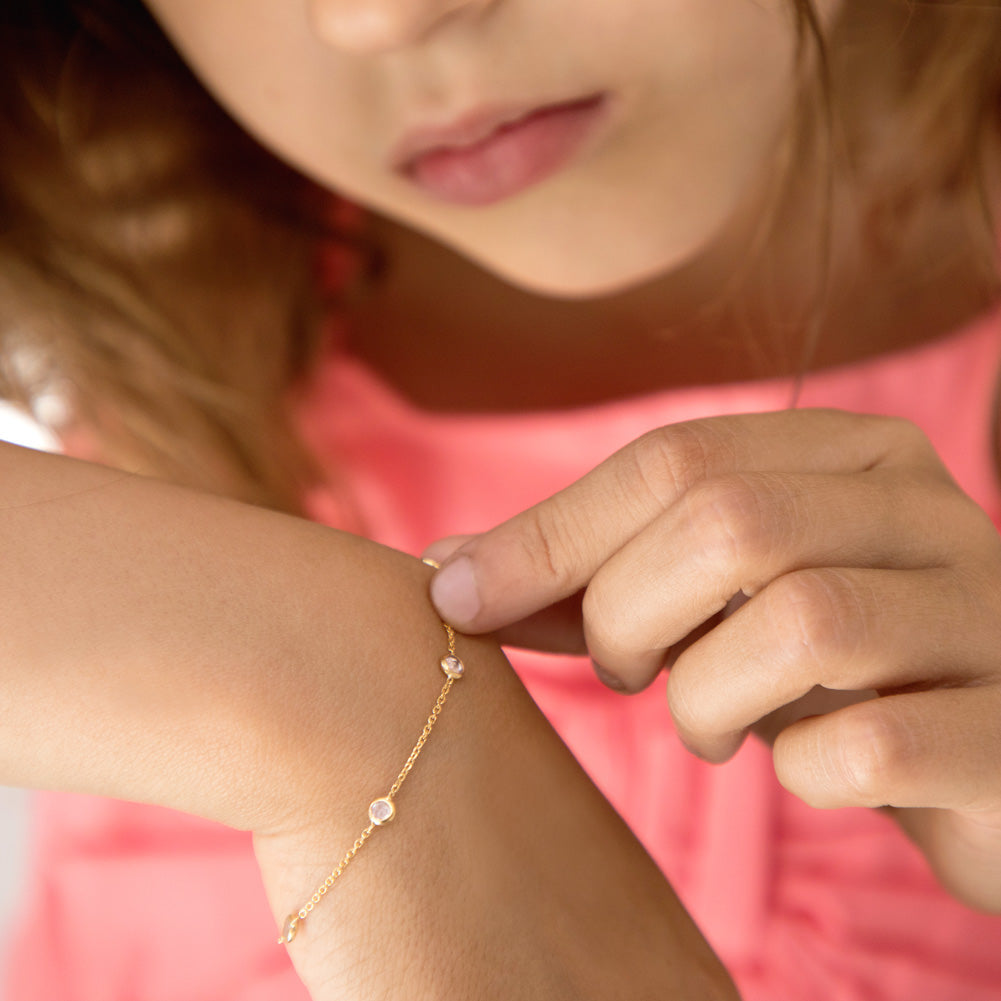 Finding the right bracelet length for your child is important to ensure a comfortable and secure fit. To determine the appropriate bracelet size, we recommend referring to our bracelet sizing guide, available on our website.