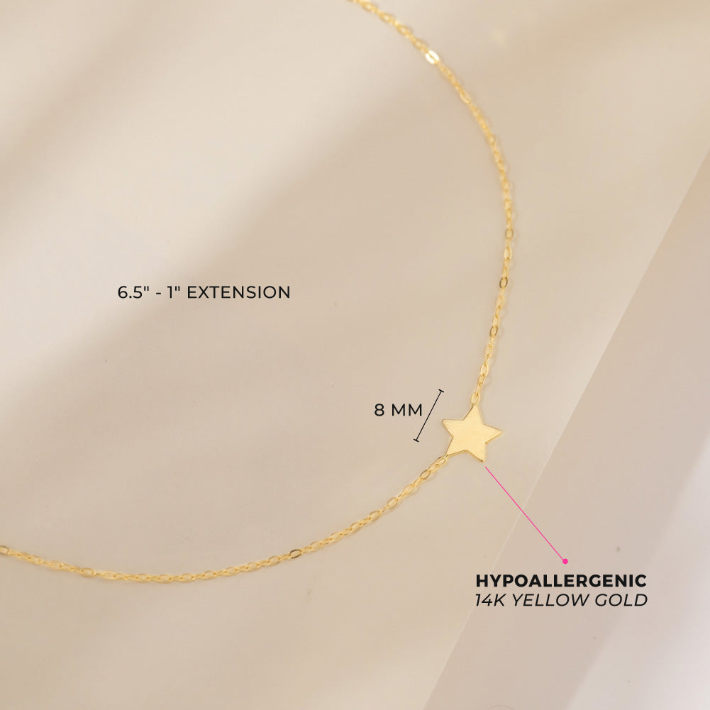 14k Gold 6.5" - 7.5" Polished Star Kids / Teen Bracelet