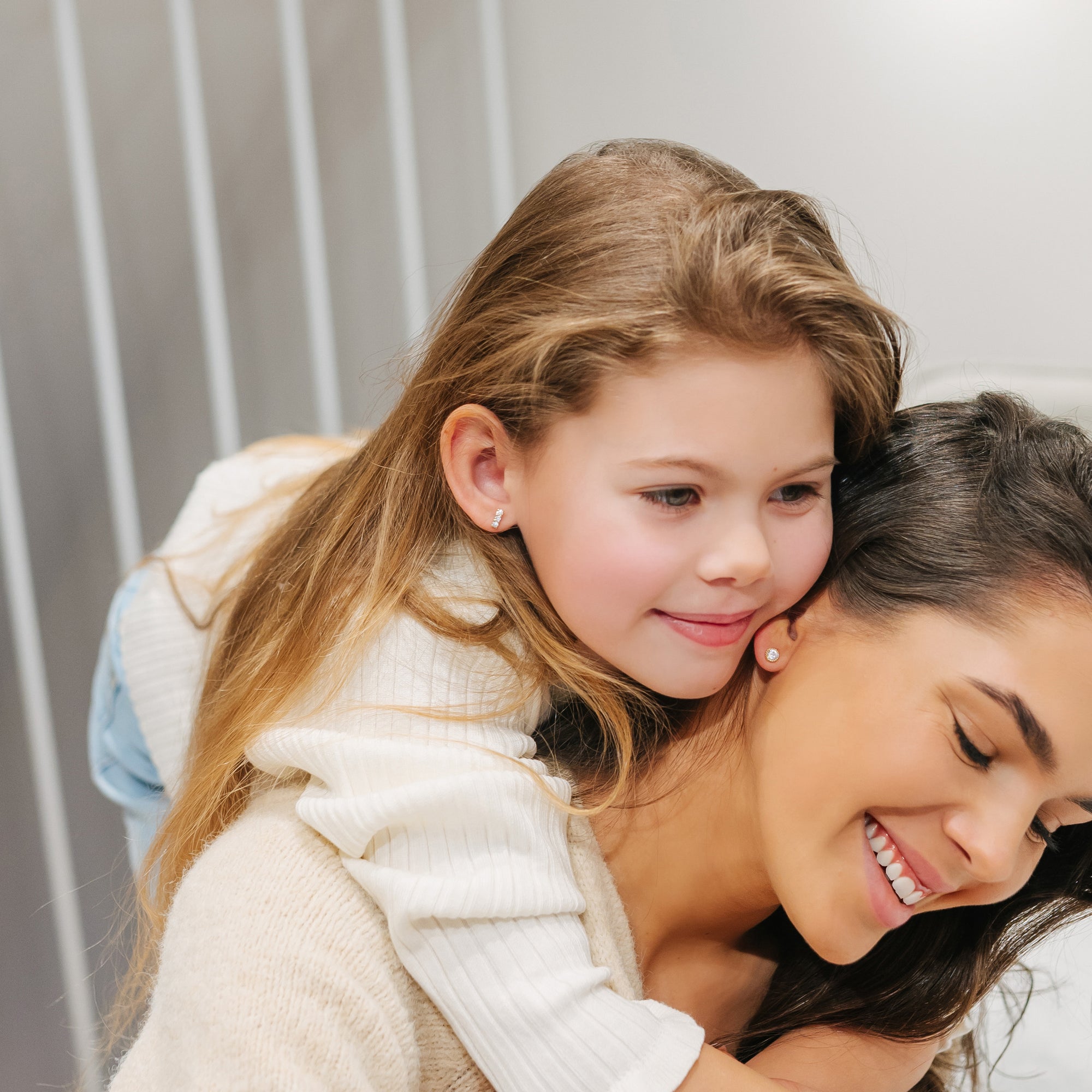 Extra small clear cubic zirconia stones bar earrings, a dainty addition to any young girl's jewelry collection! Crafted from gentle 14k yellow gold, these earrings offer a safe and hypoallergenic option, ideal for sensitive young skin. Each earring features a row of vibrant clear cubic zirconia stones, adding a pop of color and sparkle to any outfit. With their safety screw back feature, parents can trust these earrings to stay securely in place. Elevate your little one's style with these charming earrings. Gift box included with purchase.