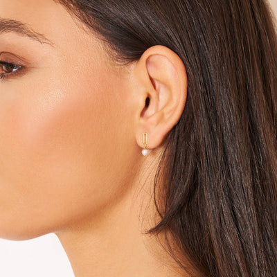 These darling dangle earrings are perfect for adding an elevated look to any wardrobe. These stunning earrings feature a delicate, simulated pearl that gracefully dangles from a chic paperclip-style setting, creating a unique and contemporary look. Crafted from luxurious 14k yellow gold, these earrings offer both timeless beauty and modern sophistication. Whether you're dressing up for a special occasion or adding a sophisticated accent to your everyday wear, these dangle earrings are a must-have addition to your jewelry collection.