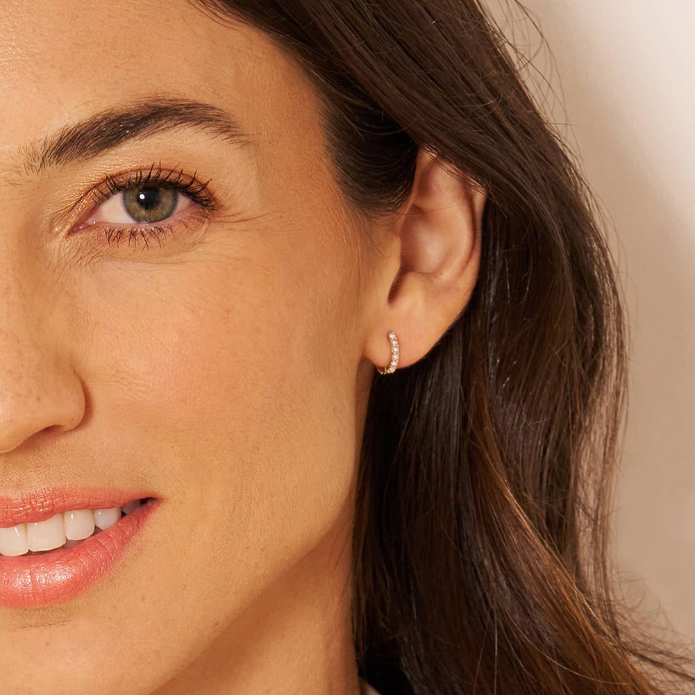 Indulge in a blend of sophistication and femininity with our exquisite 14k yellow gold petite pearl women's hoop earrings. These captivating hoop earrings feature a delicate arrangement of 2mm-2.5mm freshwater cultured pearls, encircling the hoops. Crafted with meticulous attention to detail, the luminous pearls and the radiant 14k yellow gold intertwine to create a timeless piece that complements the modern woman's style. The 14k yellow gold setting not only enhances the pearls' natural luster but also ensures long-lasting durability.