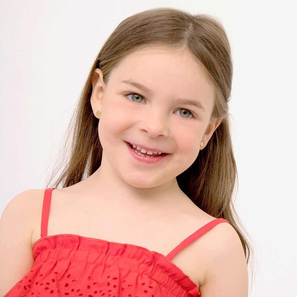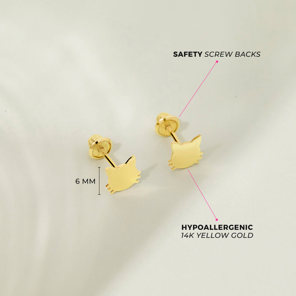 These sweet kitty earrings are a wonderful present for young girls who adore their pets, sweet polished kitty screw back earrings that they will fall in love with from the moment they see them. Polished and bright earrings for young girls carefully crafted from 14k yellow gold, safe for young girls with sensitive skin. Featuring safety screw back locking so they remain safely on their ears. A complimentary gift box is included.