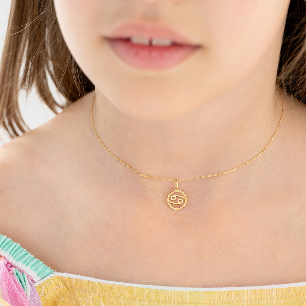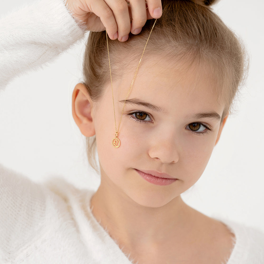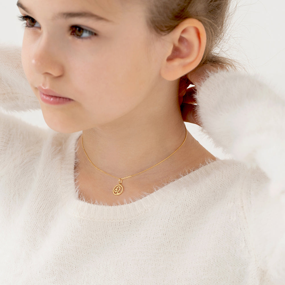 A fun personalized necklace for a young girl to receive with their personal zodiac sign. This exquisite piece features a coin medal design, with the center delicately cut to reveal their unique zodiac sign, adding a touch of personalization and charm. Crafted with care, it is safe for young girls with sensitive skin, ensuring comfort and style. Whether worn for special occasions or as an everyday accessory, this necklace will be cherished for years to come. Let your child shine bright with this timeless keepsake that celebrates their individuality and beauty.