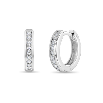 Add some sparkle to your little girls outfits with this beautiful pair of huggie hoop earrings. An extra small pair of huggies that feature beautiful clear cubic zirconia stones throughout the front of the huggie. This fun pair of huggie hoops can be paired with your little one special occasion outfits or can be worn on a regular basis. Created from 14k white gold, these little huggie hoops arrived neatly packaged into a gift box for for easy gifting.
