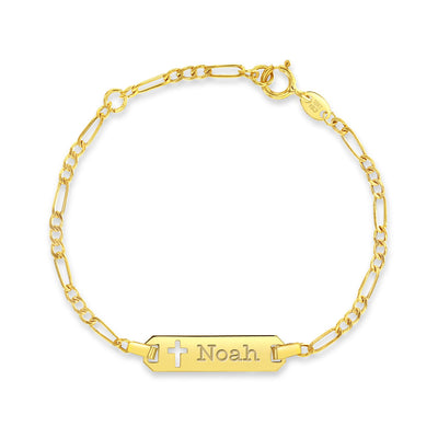 18k Gold 4.5"-5.5" Cross Cutout Tag ID Baby / Kids / Boys Bracelet