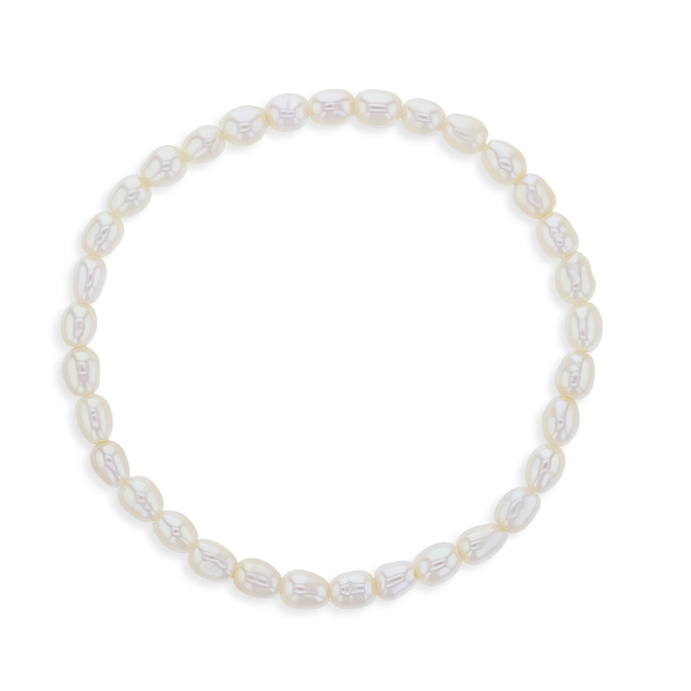 Intricately designed for delicate wrists, this freshwater cultured pearl bracelet captivates with its timeless elegance. Each cultured pearl, meticulously strung together, forms a mesmerizing sequence of iridescent beauty. Crafted with utmost care, this bracelet is not only a charming accessory but also gentle for sensitive skin. A subtle touch of sophistication, this freshwater cultured pearl bracelet is a cherished keepsake that will accompany her on countless precious moments, creating lasting memories to be treasured for years to come. Beautifully packaged into its own little gift box.