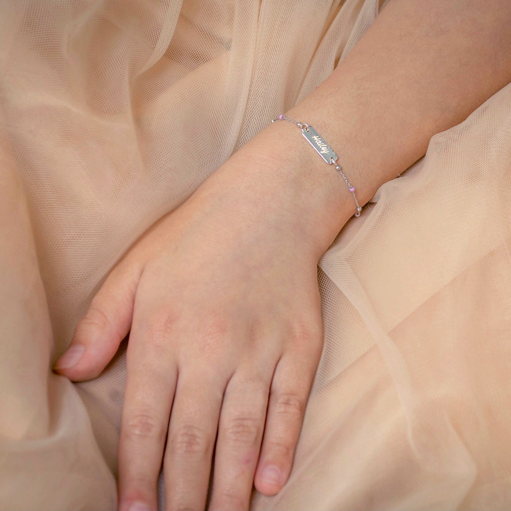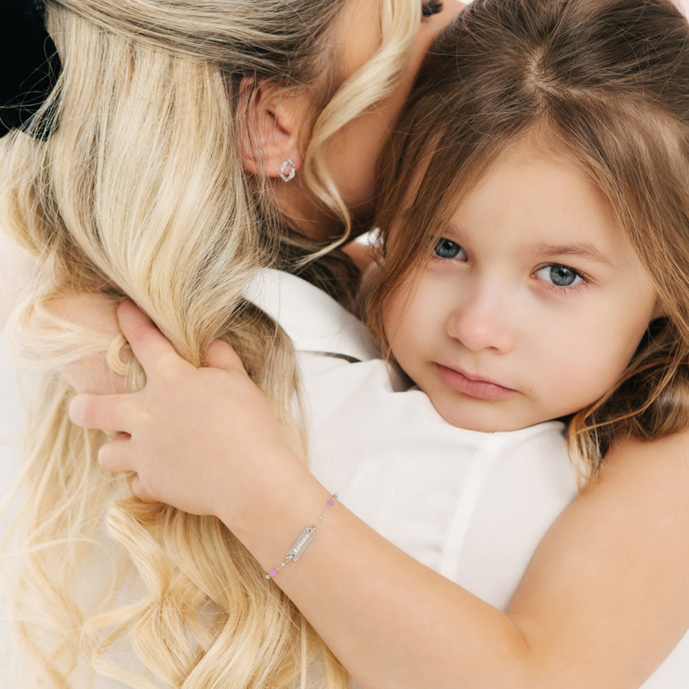 This pink enamel and sterling silver bead bracelet represents the never-ending love and friendship. So pretty and dainty and comfortable to wear, it's a great way to show your love to your little child. This ID bracelet is the perfect gift for Birthday, Christmas and any other special occasion. A complimentary gift box is included.
