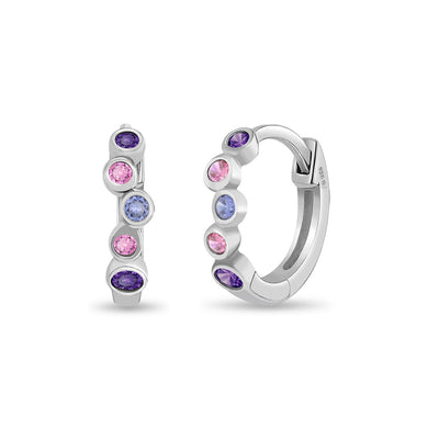 Delicate and dazzling, these little girls' hoop earrings are the sweetest blend of sparkle and charm. Each hoop is adorned with shimmering cubic zirconia bezel set stones that catch the light beautifully. Made entirely from 925 sterling silver, they’re designed to be both stylish and gentle on sensitive ears. A secure hinged closure ensures a snug, comfortable fit, making them a lovely choice for everyday wear or special occasions. A small gift box is included with purchase.