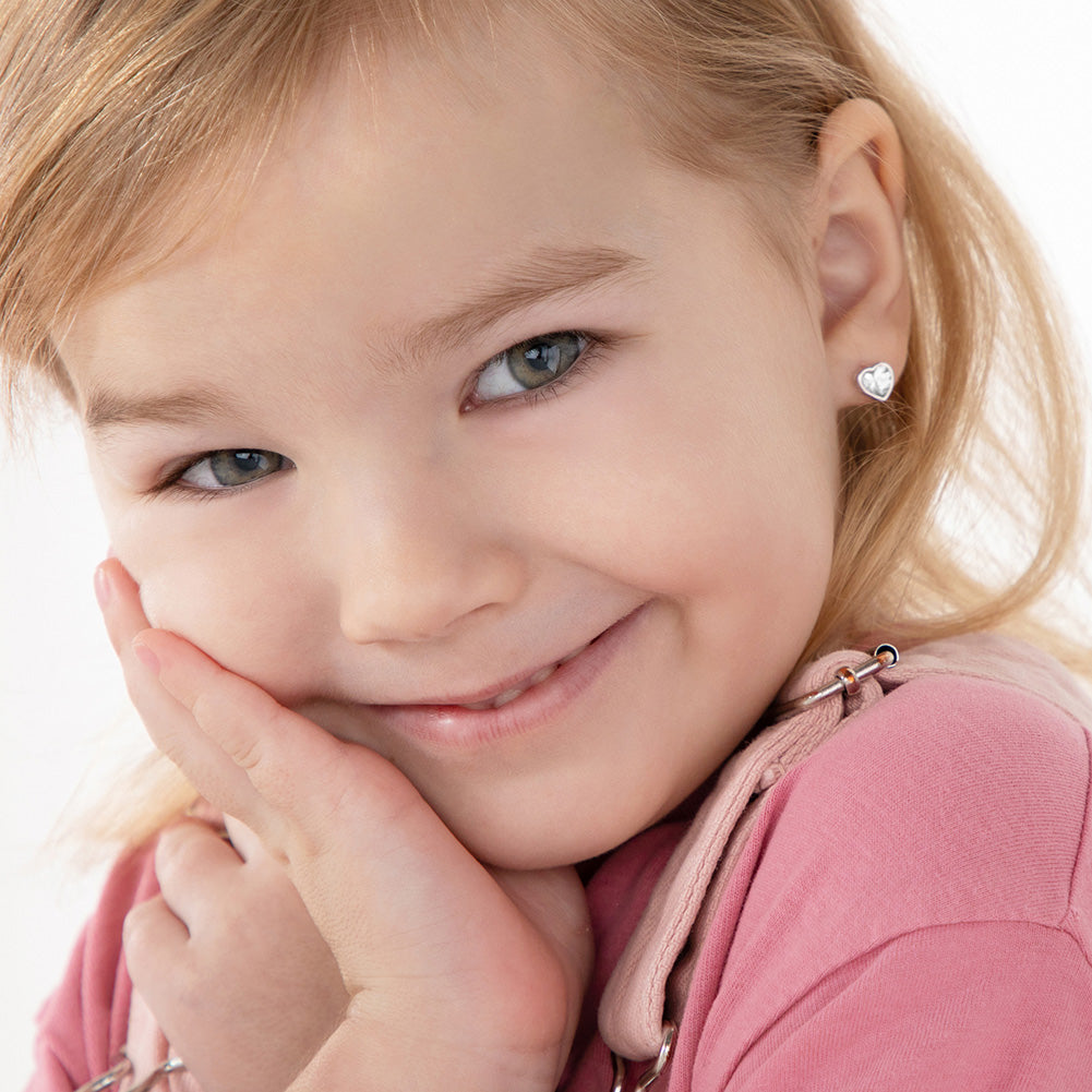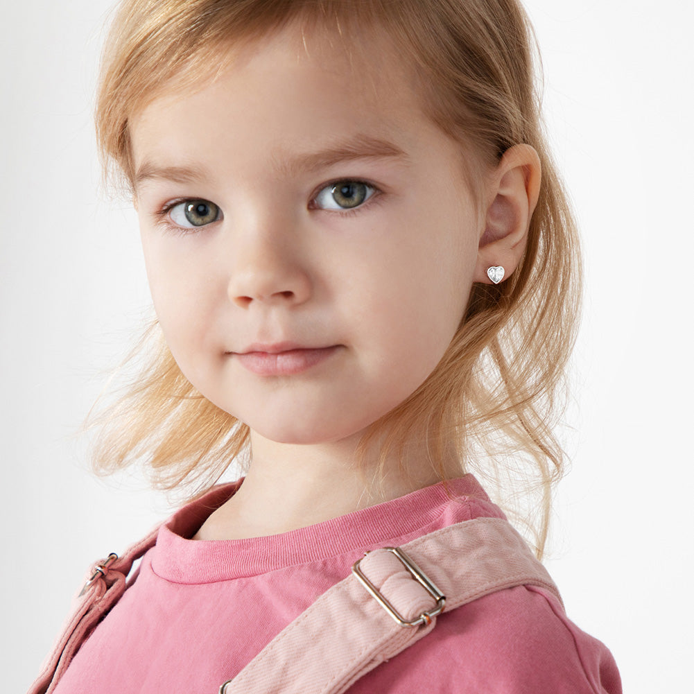 Love is in the air with these adorable 7mm cubic zirconia earrings for toddlers and little girls! The perfect size for all ages, these heart earrings for kids are crafted in 925 sterling silver and use first quality CZ stones. These hypoallergenic girl's earrings are completely safe for children with sensitive skin. The posts are threaded and feature a safety back system to ensure your child's earrings stay comfortably in place. These toddler & young girl earrings make a perfect gift for any occasion as well as for everyday fashion. A complimentary gift box is included for easy giving!
