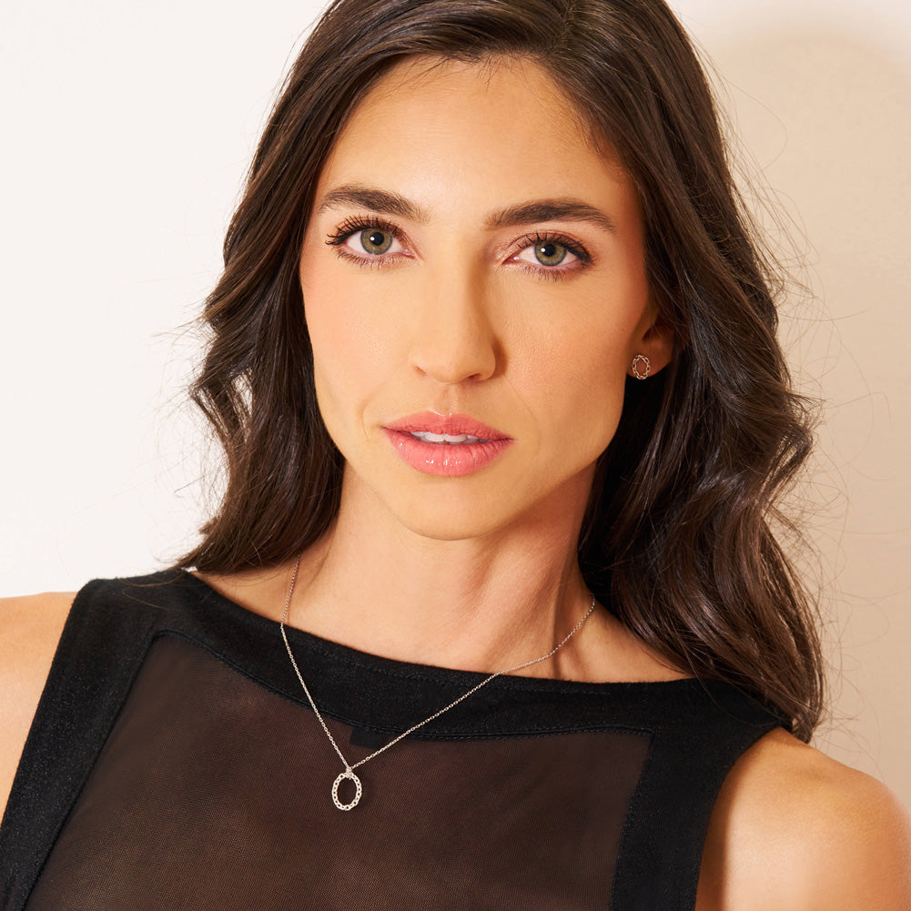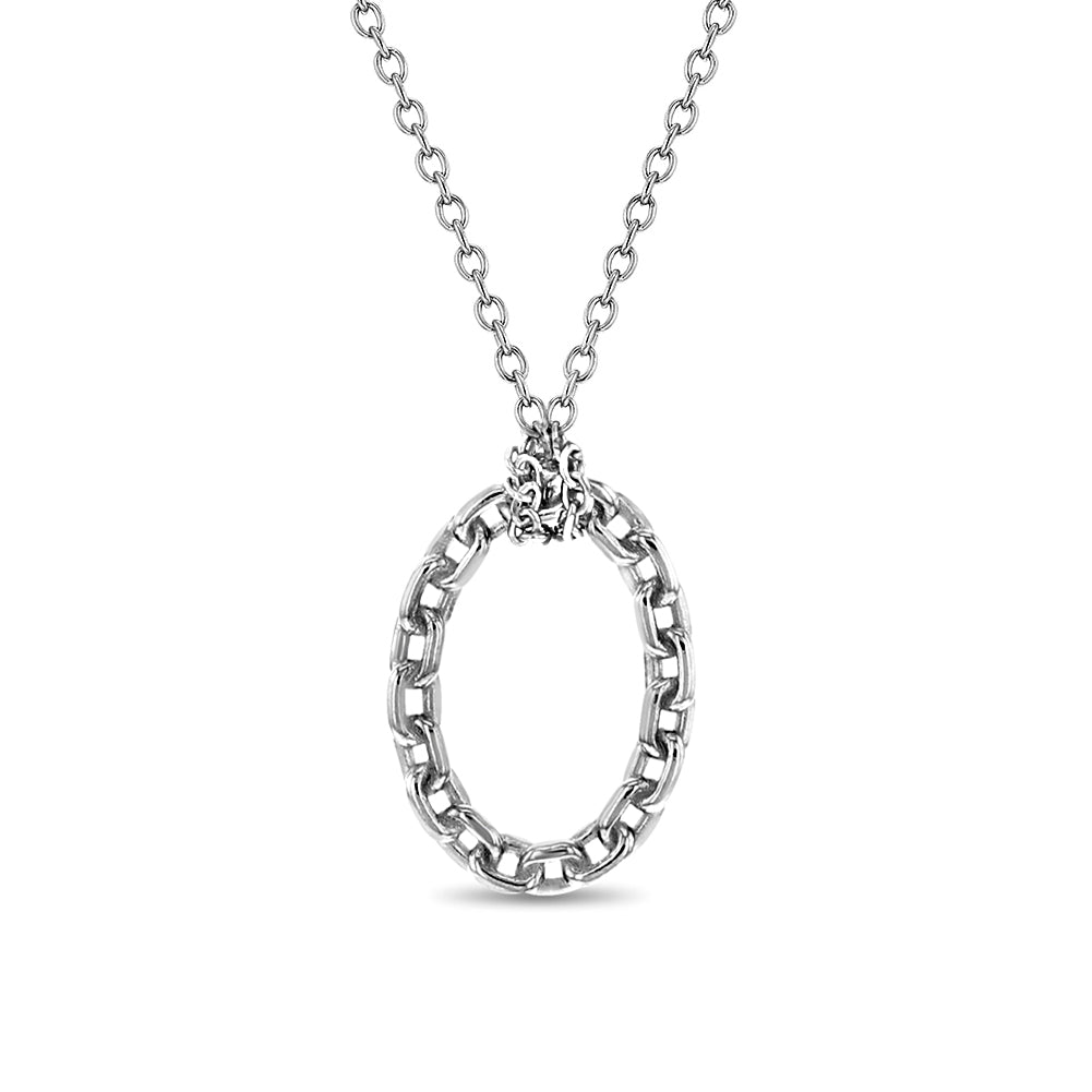 Our captivating chain linked open oval pendant necklace. This exquisite piece boasts a chic open oval pendant delicately linked to a sleek chain, showing effortless elegance. With a length of 16 inches and an additional 2-inch extension, it offers versatility to suit any neckline or occasion. Meticulously crafted from hypoallergenic 925 sterling silver, it promises both style and comfort for everyday wear. Elevate your ensemble with this timeless accessory that exudes femininity and grace. A gift box is included with purchase. Gift box included with purchase.