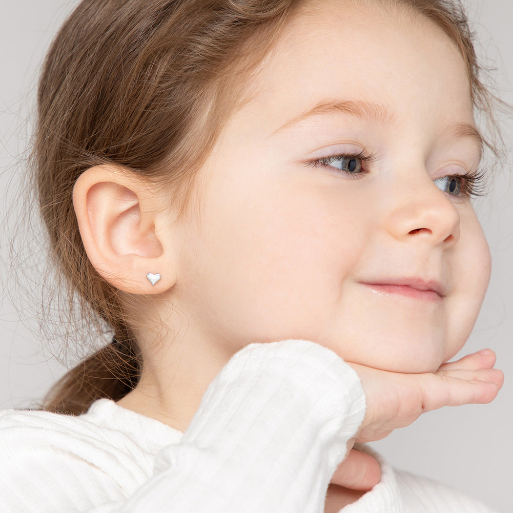 Timeless and elegant in their understated simplicity, these heart earrings are sure to become a fast favorite of your little girls's. These adorable heart earrings are crafted entirely of 925 sterling silver, a naturally HYPOALLERGENIC fine metal, making it safe for sensitive ears. They feature threaded posts and a safety back system to ensure your child's earrings stay comfortably in place. These toddler & young girl earrings make a gift for any occasion as well as for ever day fashion. Complimentary gift box is included for easy giving!