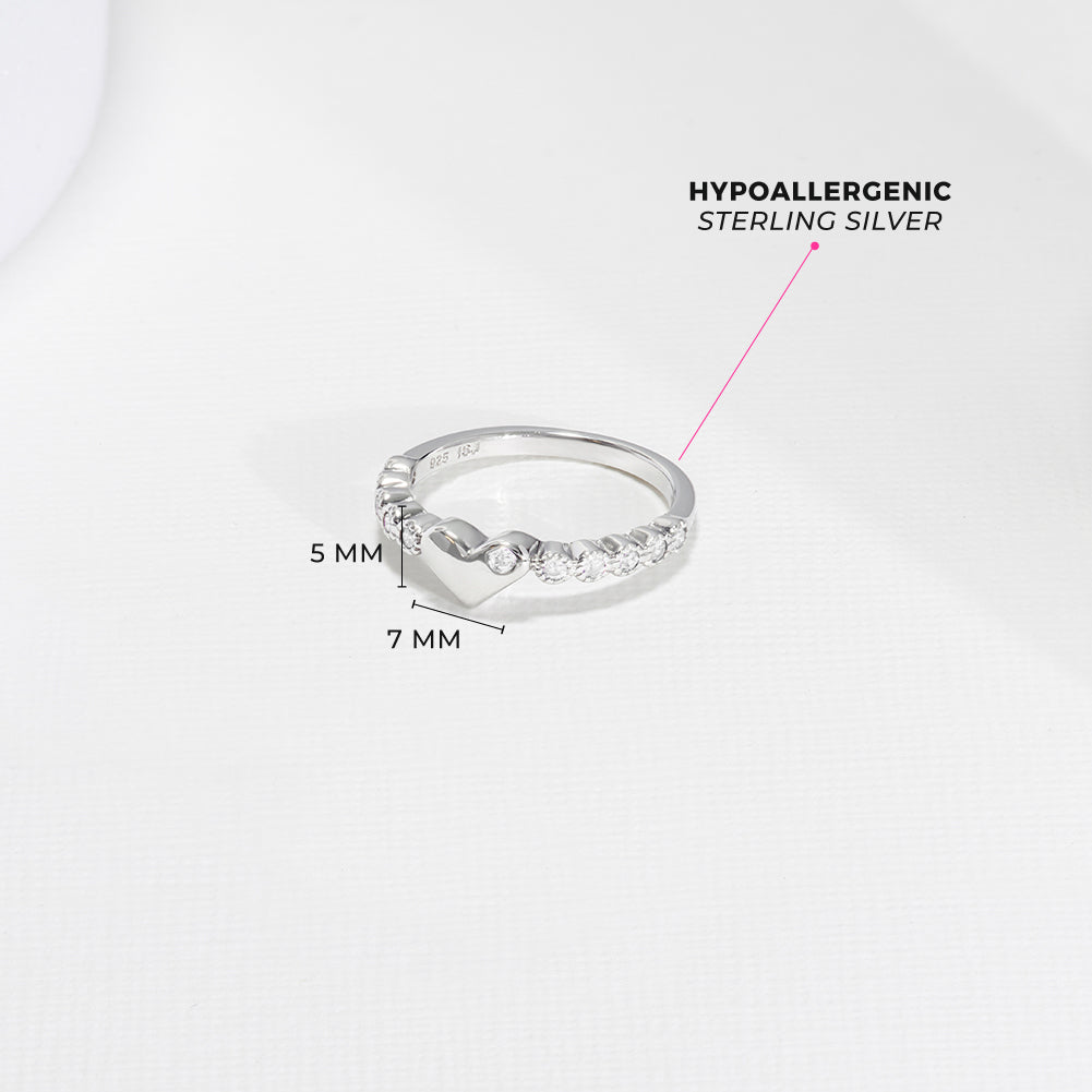 She’ll adore the thoughtful details of this vintage-inspired ring. Beautifully crafted in genuine 925 sterling silver which are naturally hypoallergenic and suitable for young girls with sensitive skin. This precious ring with a heart shape design was encrusted with brilliant clear cubic zirconias that were polished at its best to add more shine for your girl's daily outfit. Buffed to a brilliant luster, this sentimental choice for your princess is destined to be cherished. Its cute size is perfect for your beautiful young lady's hands. A complimentary gift box is included.