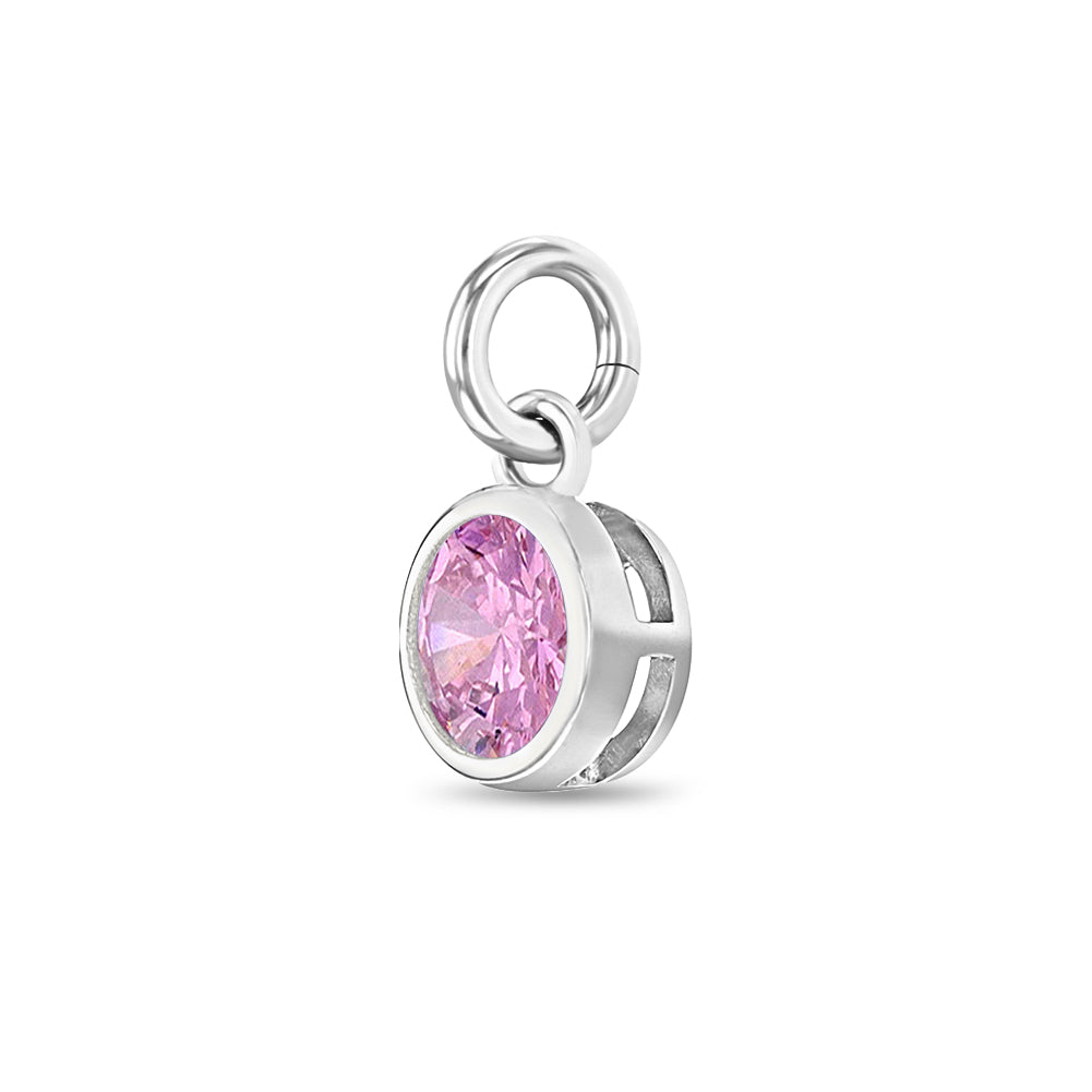 Your little girl will love to show off her simulated pink tourmaline birthstone charm alongside the rest of her favorite charms on her bracelet. A small round pink cubic zirconia stone is featured within a 925 sterling silver basket frame. Since this charm is crafted entirely from a 925 sterling silver, it is naturally hypoallergenic and safe for girls with sensitive skin. This sweet round charm will mix in perfectly with her other charms, and any birthday girl born in October will love to show it off. A gift box is included with your purchase for easy gifting.