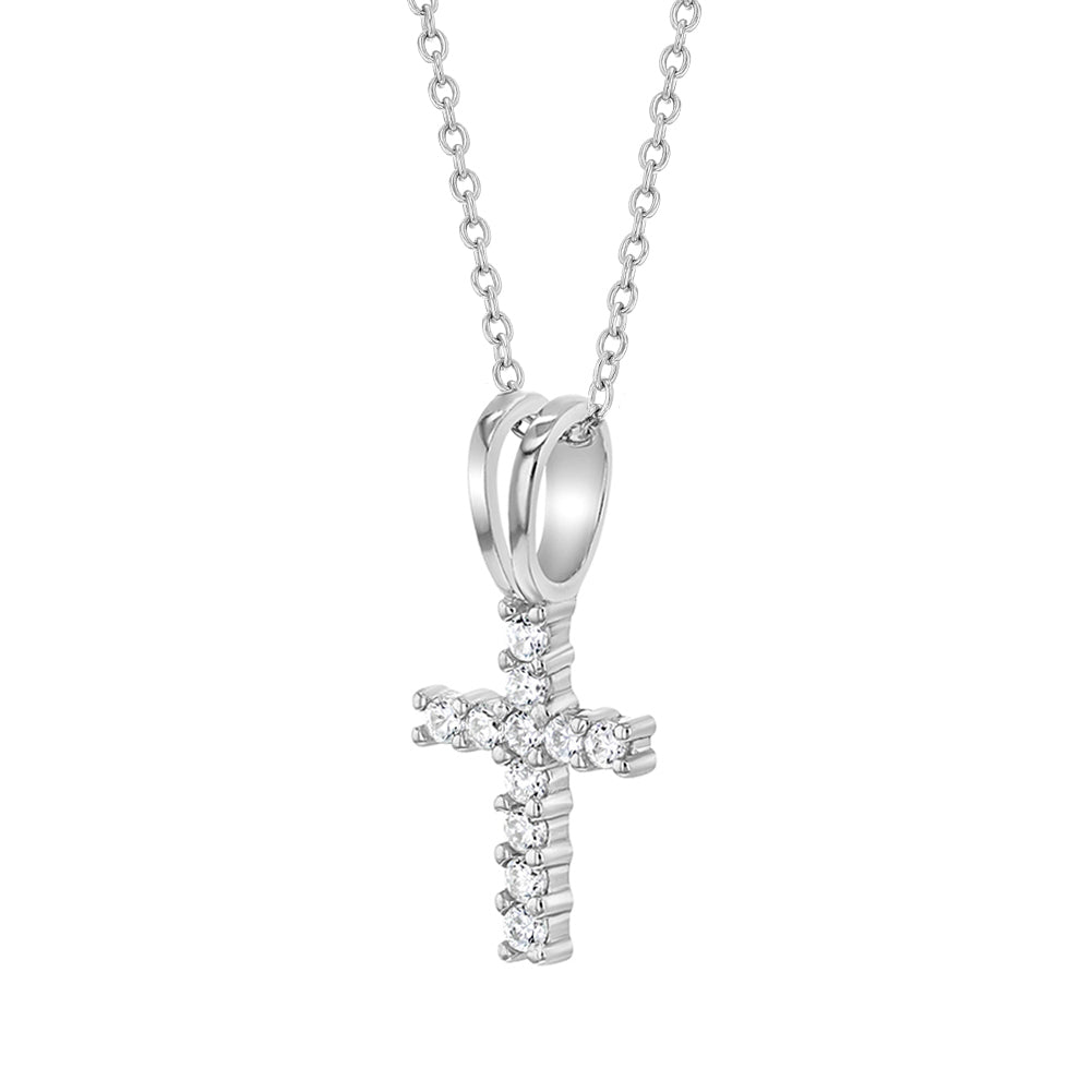 Crosses and baptism crucifixes are classic gifts for a child and their parents on the special occasion of a child's baptism. Choose a baptism cross or baptism crucifix designed especially for little ones. A baptism cross or crucifix that your child will appreciate into adulthood. If you are looking for a significant gift for your little one, our 925 sterling silver cross necklace pendant is perfect for young believers. She will immediately realize that this is not a regular gift, but a meaningful religious cross pendant necklace. This divine necklace features a detailed and polished cross with clear cubic zirconias, dangling from a matching chain. Entirely made of 925 sterling silver this necklace was designed to last and not lose shine, so it will be part of your angel's jewelry collection for many years. She will enjoy wearing it with her favorite outfits and devout her love for the cross everywhere she goes. Item will arrive packaged in a sweet gift box for easy gifting.