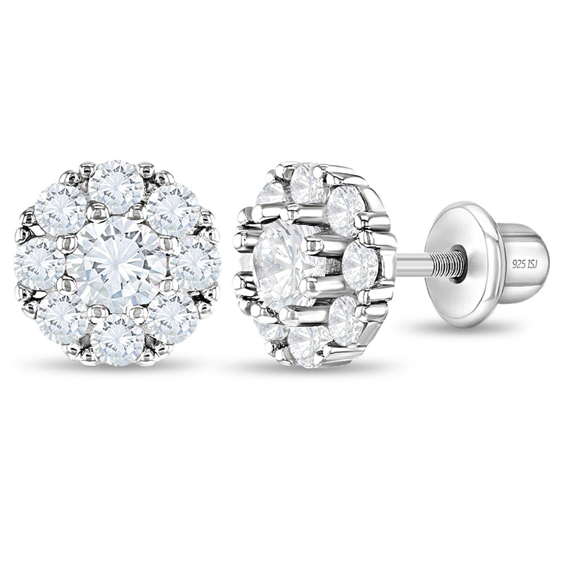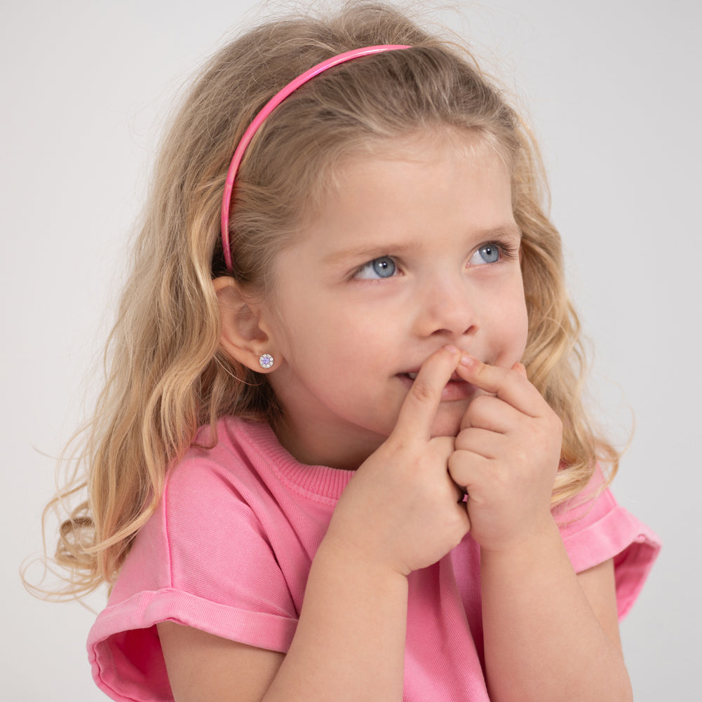 These stunning earrings for little girls will add a glamorous touch to any outfit, making it the perfect gift for your little princess. Crafted entirely in 925 sterling silver with cubic zirconia stones, they are hypoallergenic and safe for children with sensitive ears. They feature a threaded earring post and back to ensure your child's earrings stay safely and comfortably in place. A complimentary gift box is included.