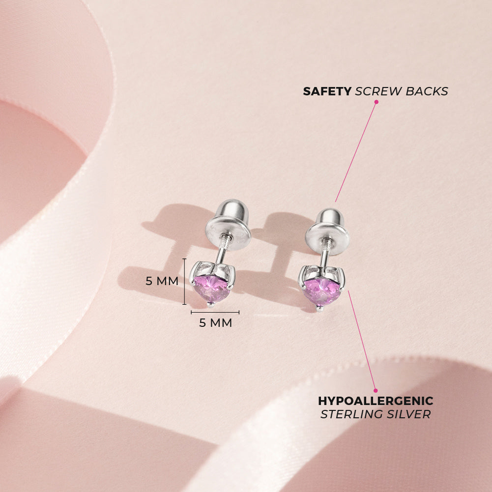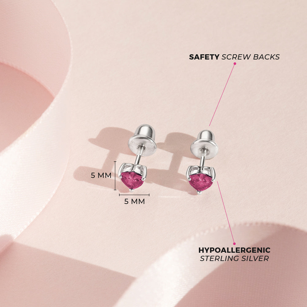 These adorable heart earrings with screw backs are delicate and striking, adding a touch of sparkle to any little girl. These baby earrings have safety screw backs for extra comfort and security and come in a variety of colors. They are made in 925 sterling silver, a naturally hypoallergenic fine metal that is perfect for children with sensitive ears. These earrings make a perfect present. Free gift box included!