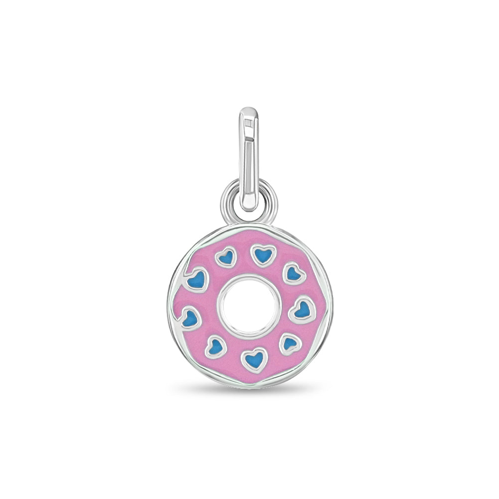 Adorn her favorite charm bracelet with this almost sweet enough to eat enamel donut charm. She will love the vibrant pink enamel glazing this donut charm and its tiny blue enamel heart shaped sprinkles throughout. A unique donut charm gift for a young girls birthday accessories. Crafted from a 925 sterling silver, this charm is great for girls with sensitive skin. A gift box is included with your purchase for easy gifting.