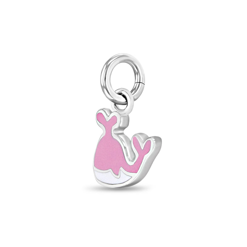 A summertime favorite, this adorable whale charm is a wonderful gift to help your little girls always remember their favorite family vacation. This small whale charm is designed with a beautiful pink and white enamel, to add a beautiful touch of color to your little girls daily outfits. Crafted from a 925 sterling silver, this charm is great for girls with sensitive skin. A gift box is included with your purchase for easy gifting.