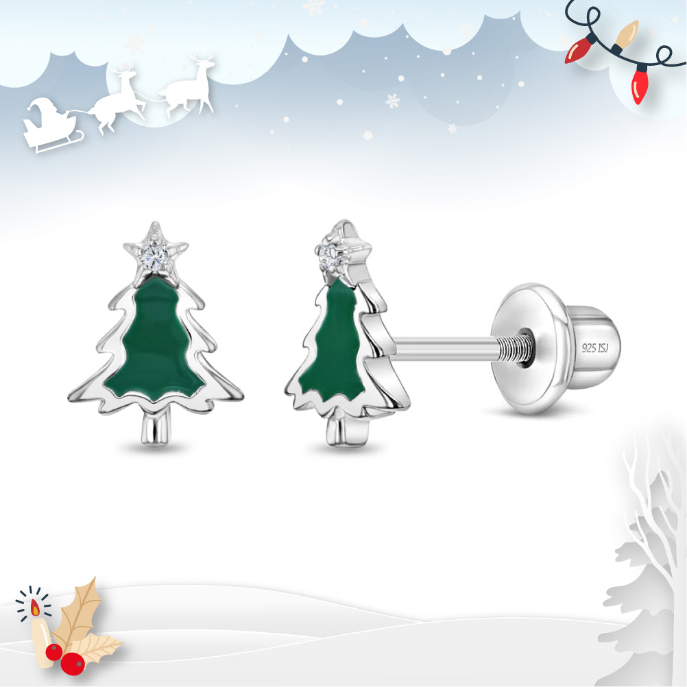 Celebrate the holiday season with these festive Christmas tree earrings, for little girls! Crafted from 925 sterling silver, a hypoallergenic material safe for sensitive skin, these adorable earrings feature a vibrant green enamel Christmas tree design that sparkles with holiday cheer. Designed with safety in mind, they come with secure screw back closures, ensuring they stay comfortably in place during all the holiday fun. Whether it’s for a holiday party or as a special gift, these charming earrings will bring a joyful touch to your child's festive outfits!