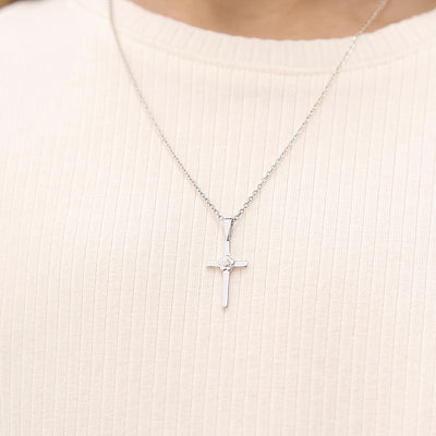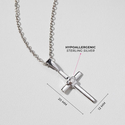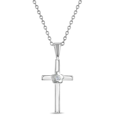 If you are looking for a Religious jewelry gift for a Holy Communion, Confirmation, Christmas or for someone who just quietly follows the faith, this is a perfect present for her! A simple but lovely cross necklace made of 925 sterling silver and featuring a lovely blossom at its center, accented with a pretty cubic zirconia for a sweet touch. This beautiful cross necklace rests on a matching sterling silver link chain and is packaged into lovely gift box is included for your convenience.