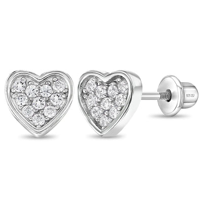 Heart Full of Gems CZ Baby / Toddler / Kids Earrings Screw Back - Sterling Silver