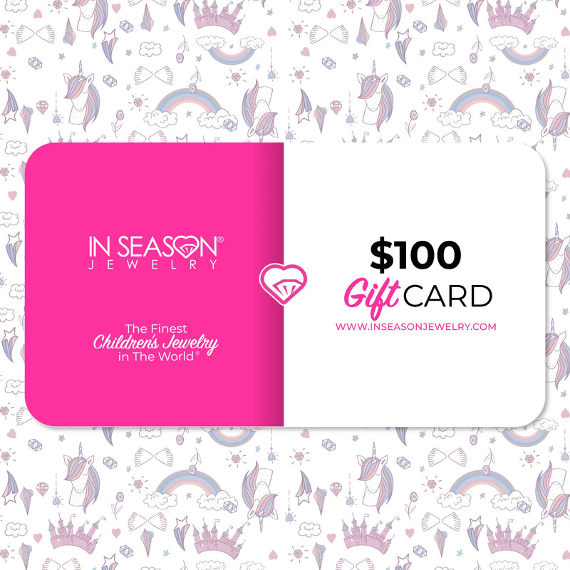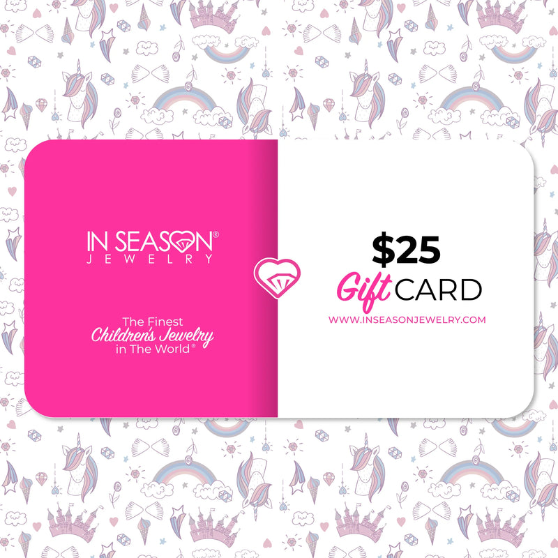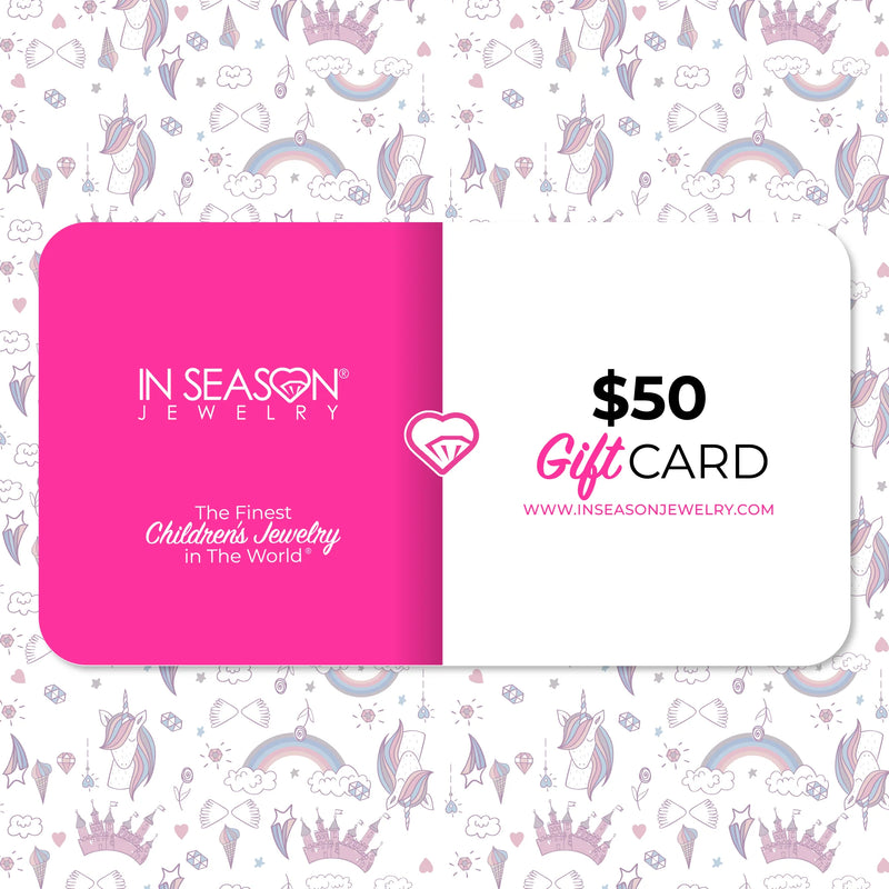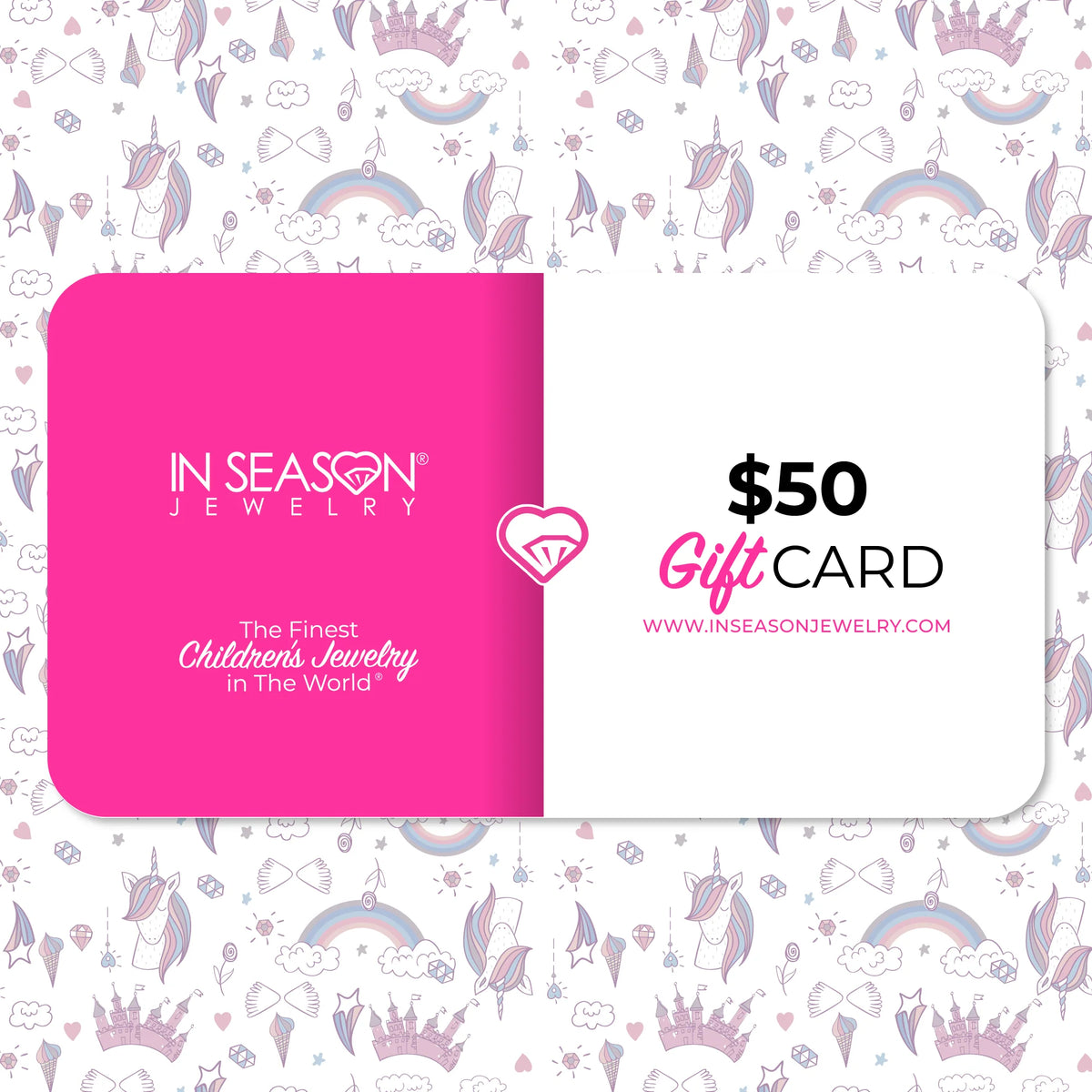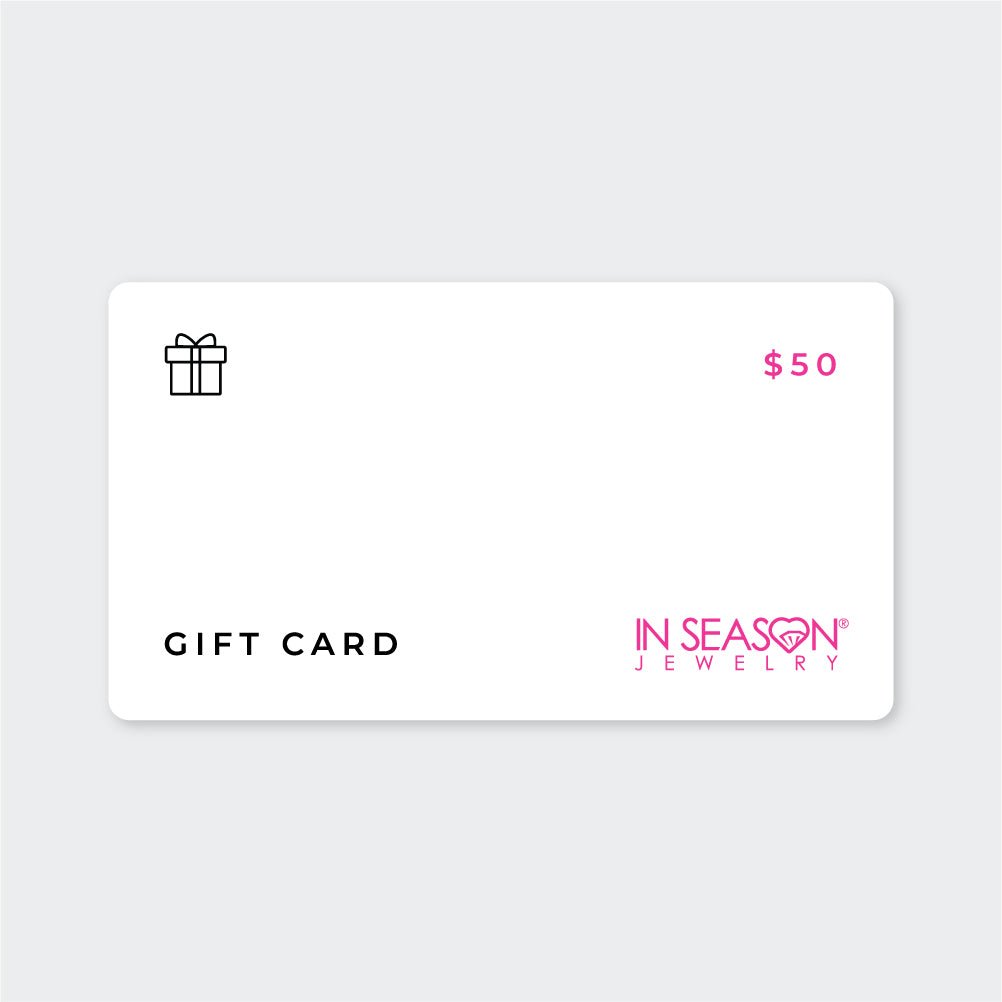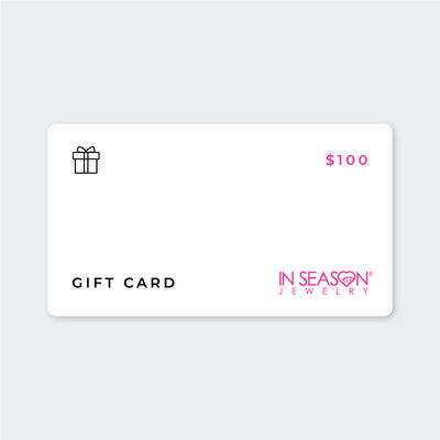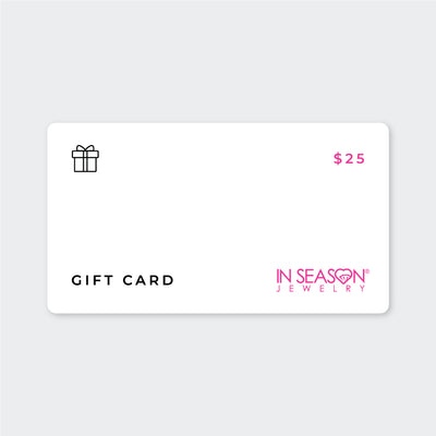 Shopping for someone else but not sure what to give them? Give them the gift of choice with a IN SEASON JEWELRY Gift Card. Gift cards are delivered by email and contain instructions to redeem them at checkout. Our gift cards have no additional processing fees and no expiration date.