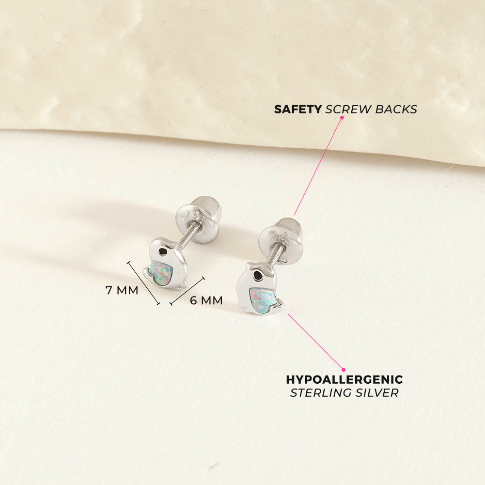 Introducing these delightful little girls' dove earrings, where the wings shimmer with simulated opal stones. Crafted from gentle 925 sterling silver, these earrings ensure comfort for children with sensitive skin. They feature secure safety screw back closures, offering peace of mind to parents. For young nature lovers, these earrings embody grace and charm, making them an enchanting addition to any child's jewelry collection. A gift box is included with purchase.