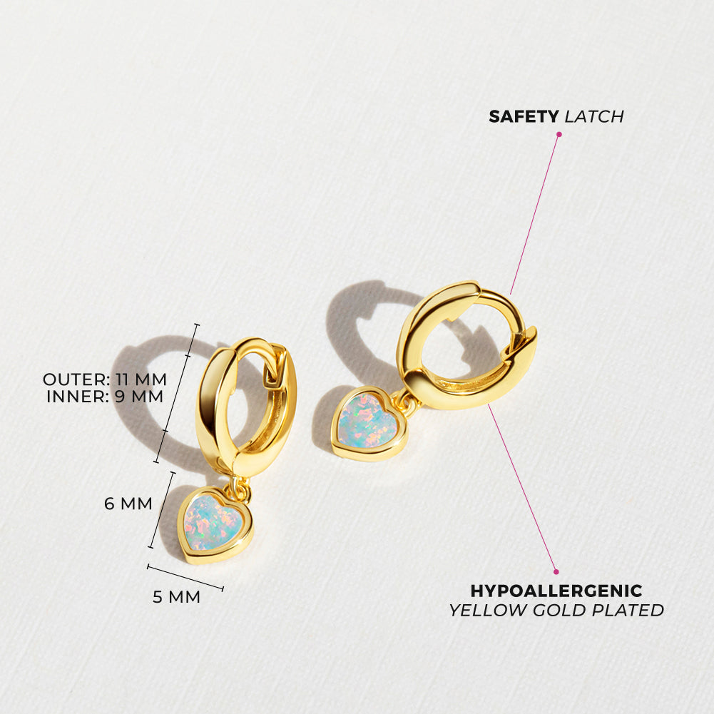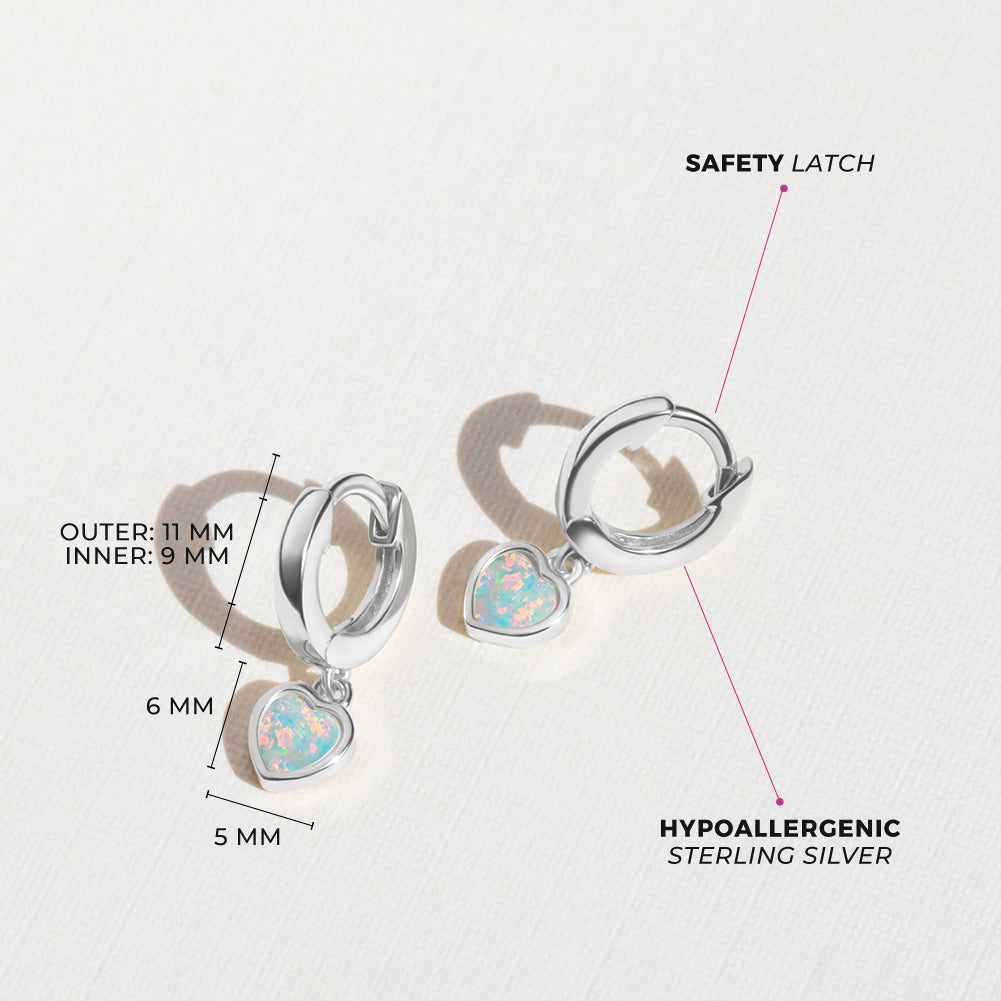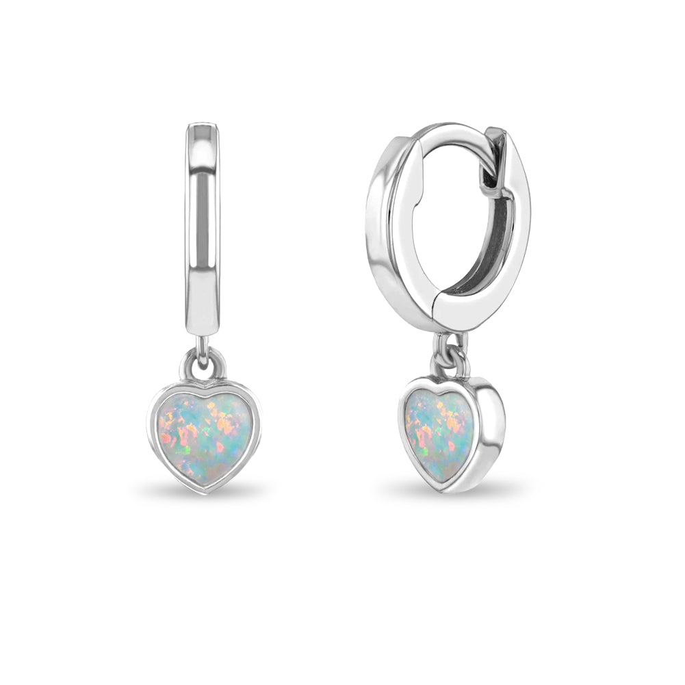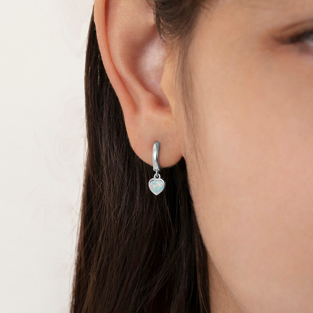 She will instantly fall in love with the look of these adorable dangle hoop earrings. This stunning pair of earrings feature a small simulated opal heart detail dangling from an 11mm hoop. A unique pair of earrings that she will love to comfortably wear throughout the day. Crafted from 925 sterling silver, this pair is ideal for young girls who have sensitive ears. A gift box is included with purchase.
