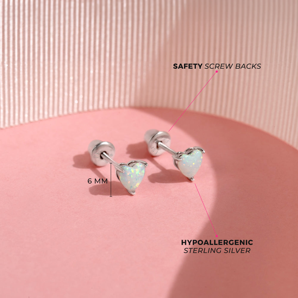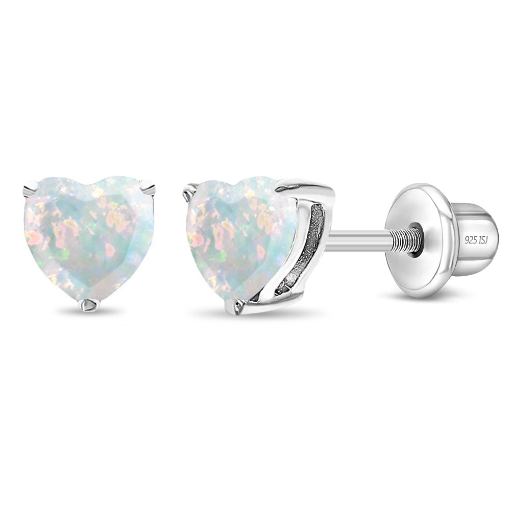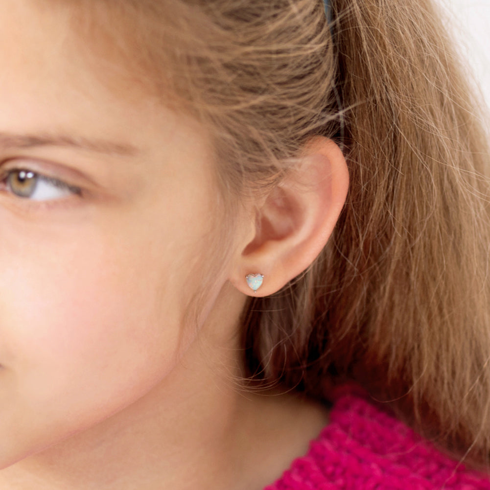 Our enchanting heart children's earrings, designed to add a touch of sparkle to your little one's look! These charming earrings feature delicate heart shapes adorned with stunning simulated opal stones, radiating a mesmerizing iridescence. Crafted from hypoallergenic 925 sterling silver, they are for children with sensitive ears, ensuring comfort and safety all day long. With their secure safety screw back closure, these earrings offer peace of mind, for active kids. Whether for everyday wear or a special occasion, these heart earrings are sure to capture hearts and make a delightful addition to any young fashionista's jewelry collection. Gift box included with purchase.