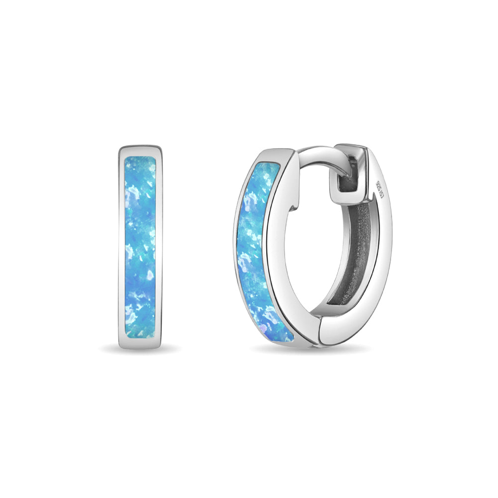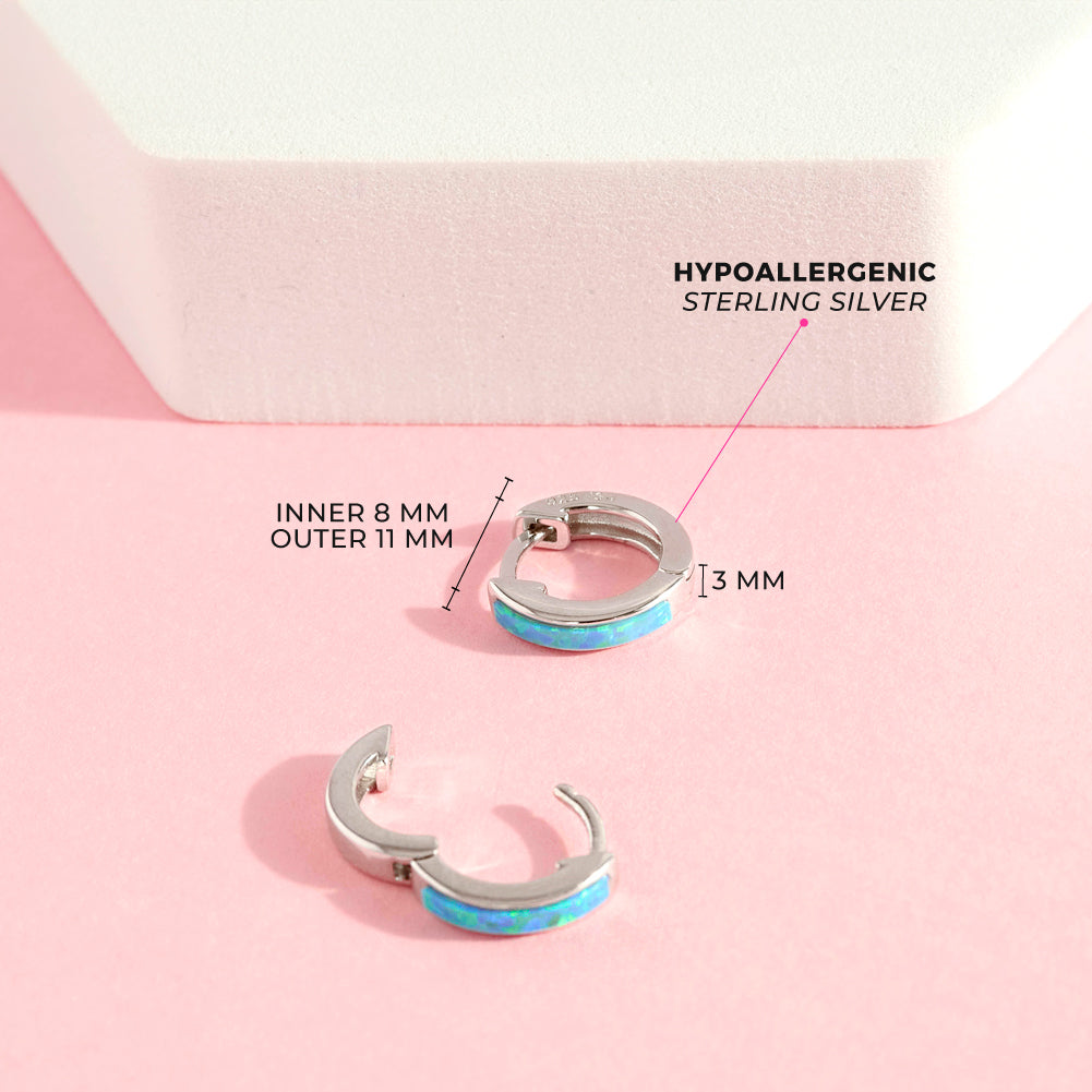 Opal Inlay Huggie Hoop Earrings 8mm - Sterling Silver