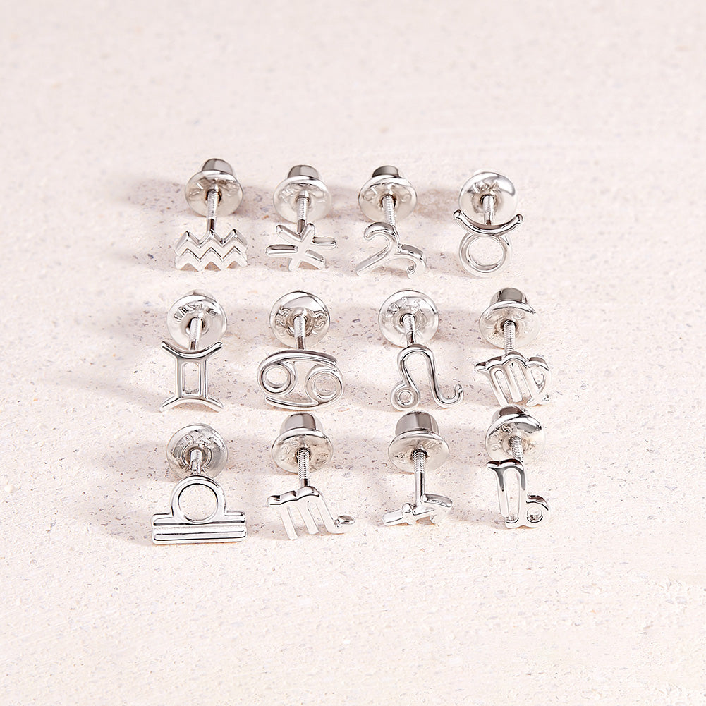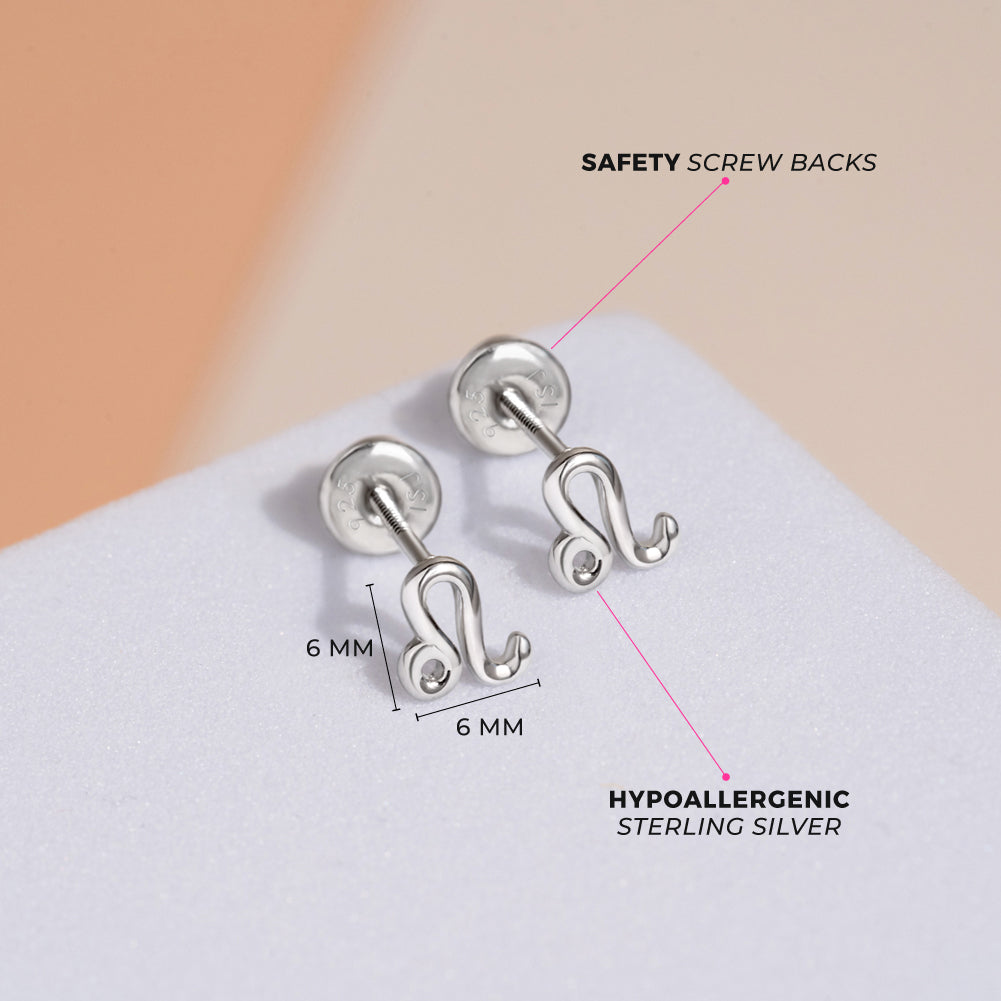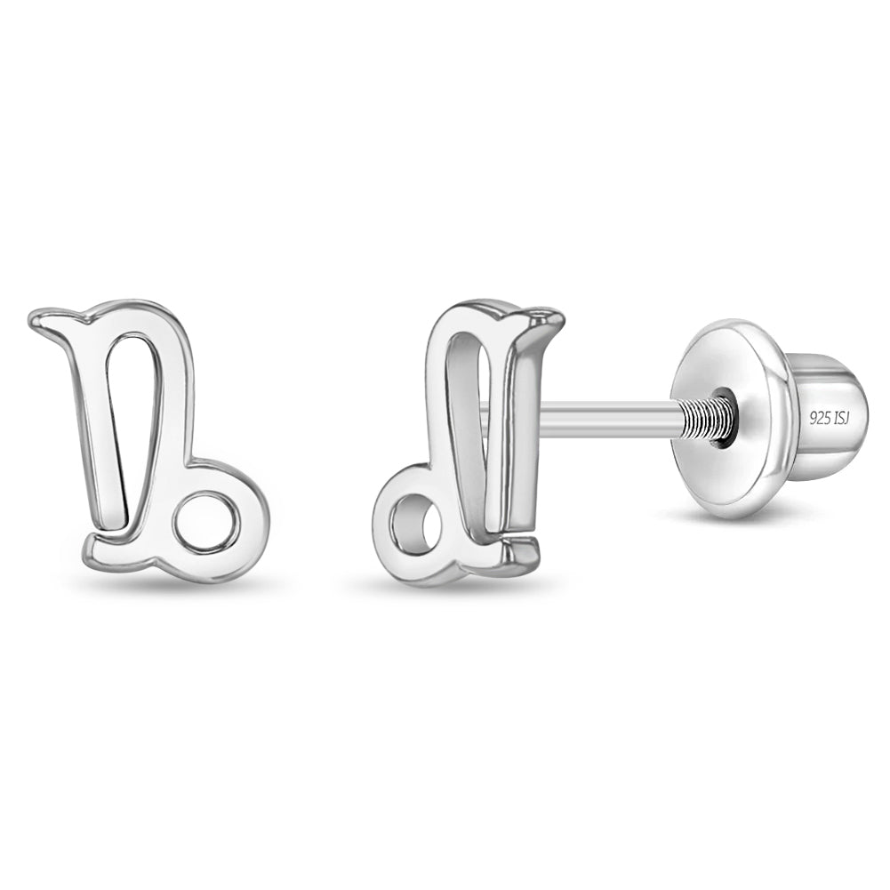 Elevate your little girl's style with these charming Zodiac earrings crafted from polished 925 sterling silver. Each pair showcases her unique zodiac sign, adding a personalized flair to her ensemble. The hypoallergenic nature of the sterling silver ensures comfort and safety for sensitive skin types, allowing her to wear them with confidence all day long. With their secure safety screw back closure, you can rest assured that these earrings will stay in place. Let her embrace her individuality with these adorable and stylish earrings that are as unique as she is. Gift box included.