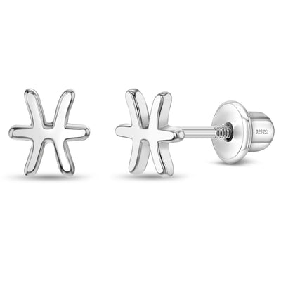 Elevate your little girl's style with these charming Pisces zodiac earrings crafted from polished 925 sterling silver. Each pair showcases her Pisces sign, adding a personalized flair to her ensemble. The hypoallergenic nature of the sterling silver ensures comfort and safety for sensitive skin types, allowing her to wear them with confidence all day long. With their secure safety screw back closure, you can rest assured that these earrings will stay in place. Let her embrace her individuality with these adorable and stylish earrings that are as unique as she is. Gift box included.